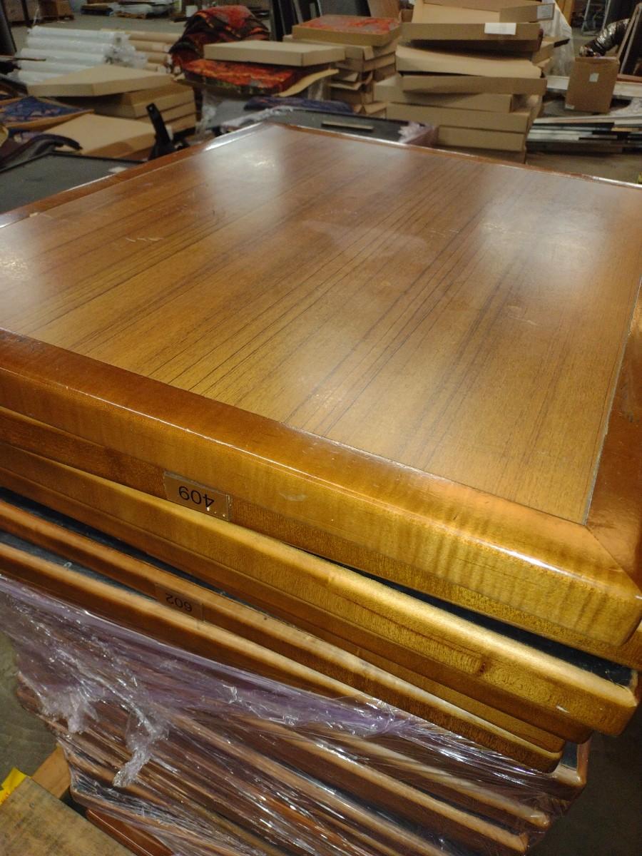 Two Stacks of Solid Wood Tabletops Various Shades of Finish Choice  A
