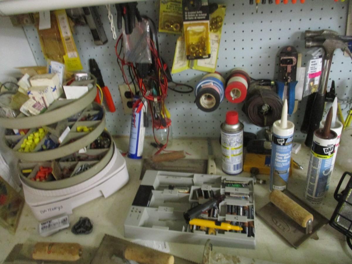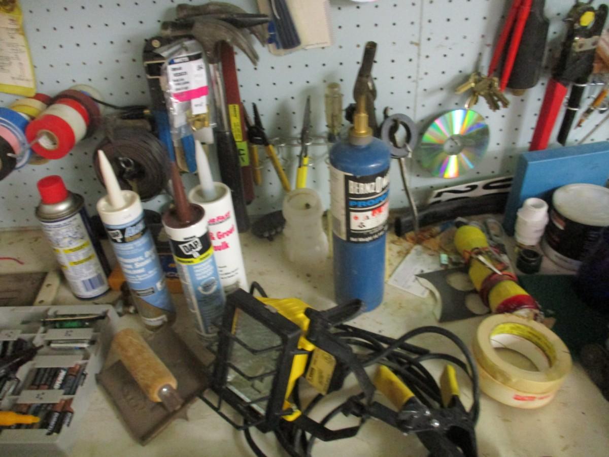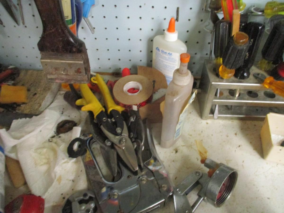 Table Top Full Of Shop Tools & Supplies