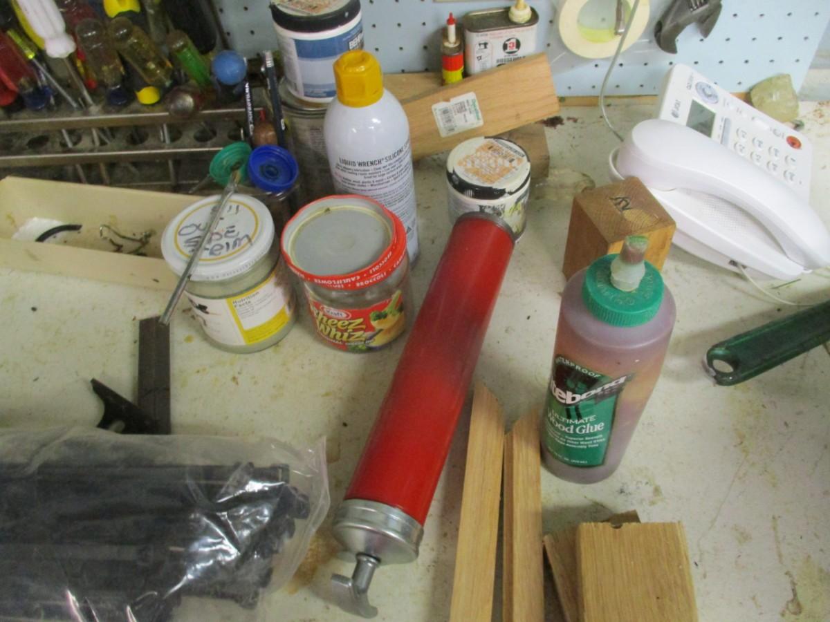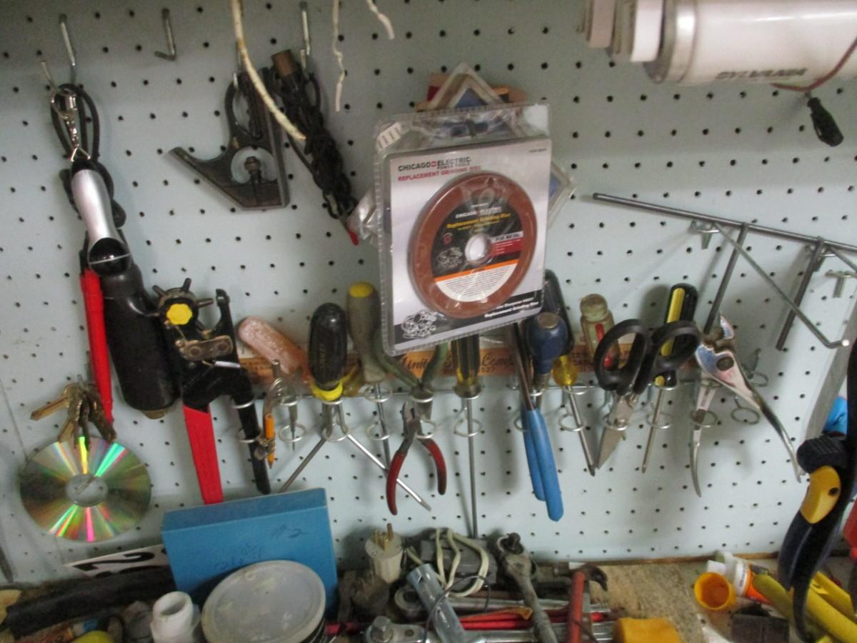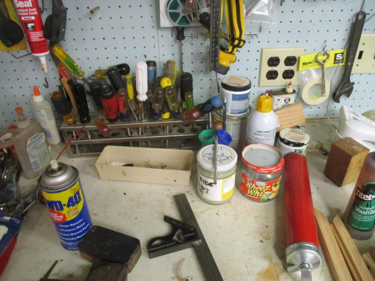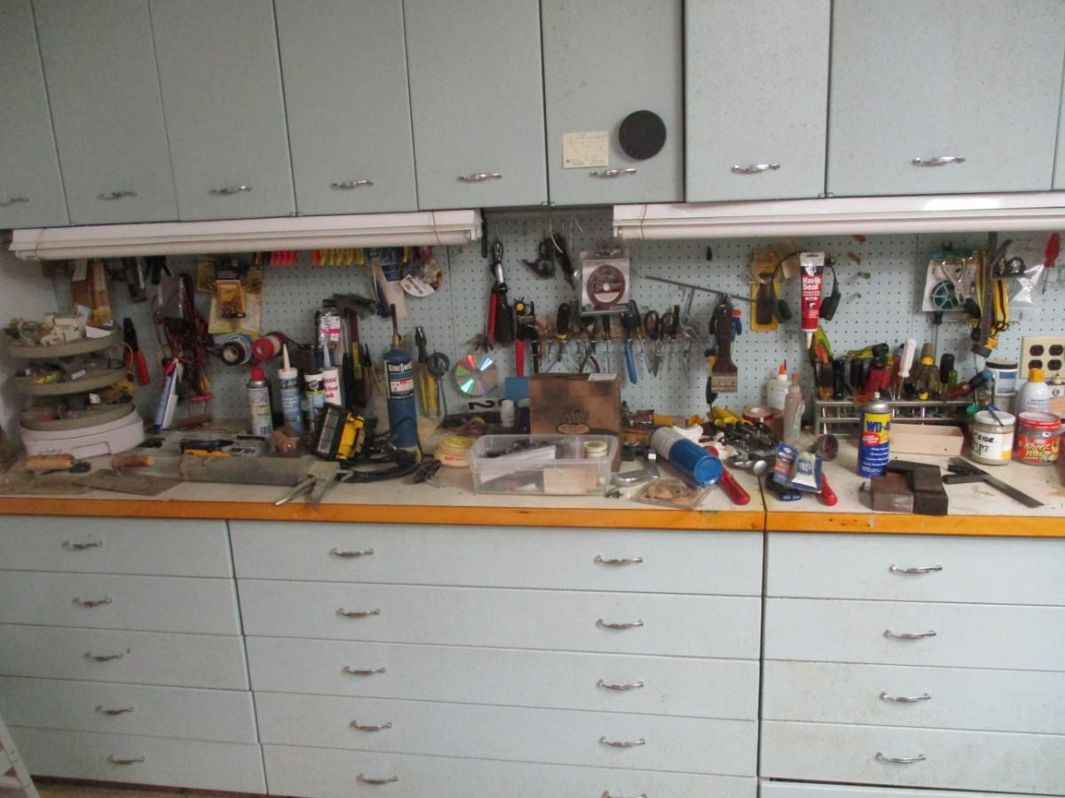 Table Top Full Of Shop Tools & Supplies