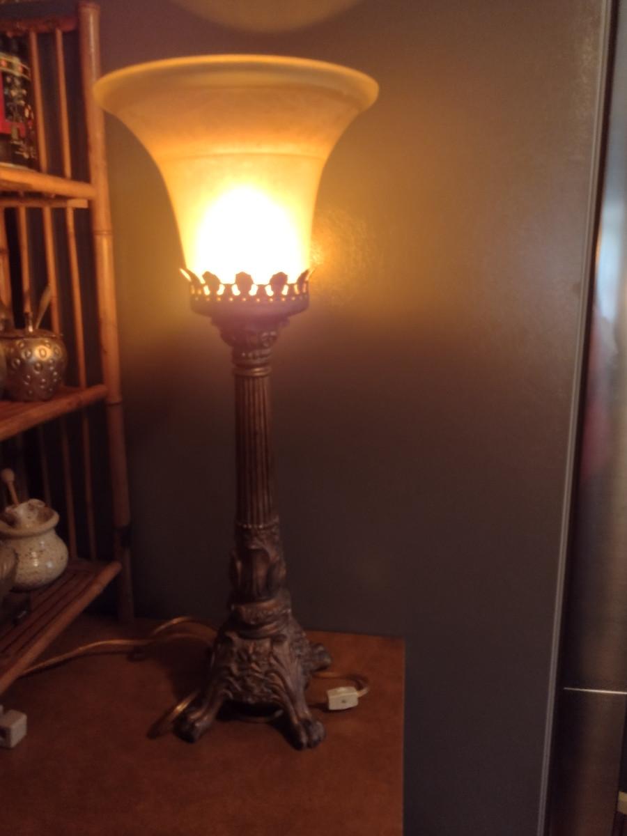 Table Top Torchiere Style Lamp. Approx 26" tall.
