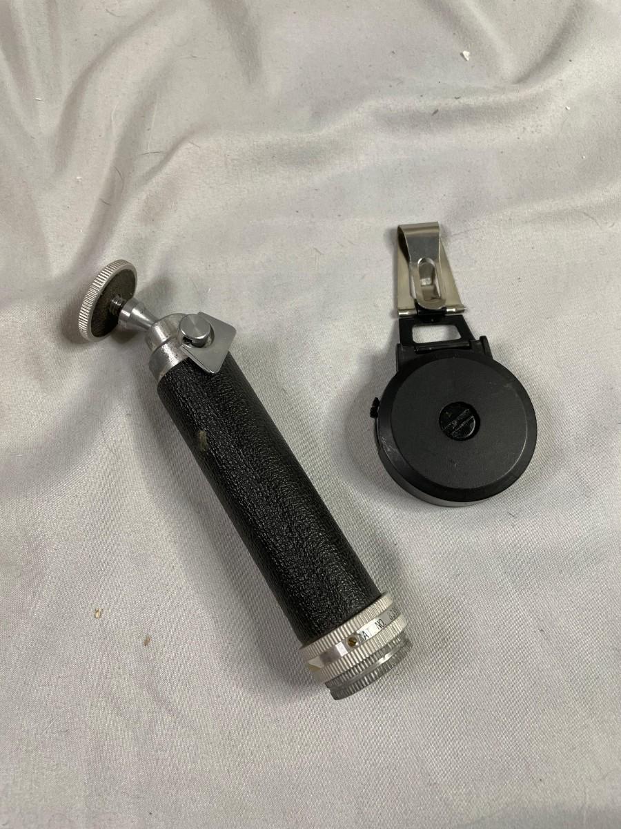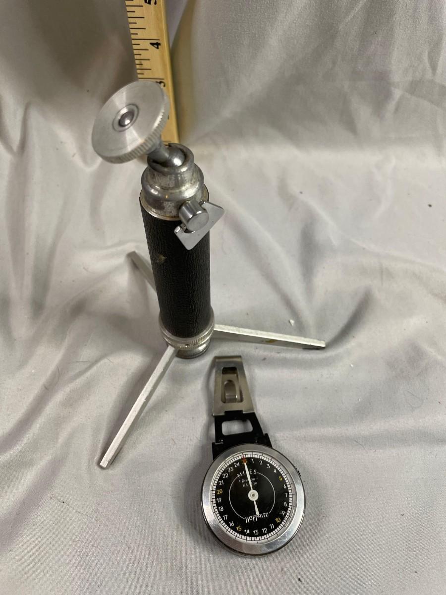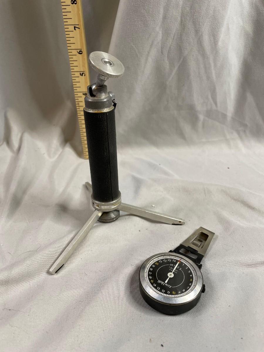 The tripod folds up to be stored easily and travel without taking up much space. The pedometer attaches to your belt to help you keep track of steps and distances.<br />