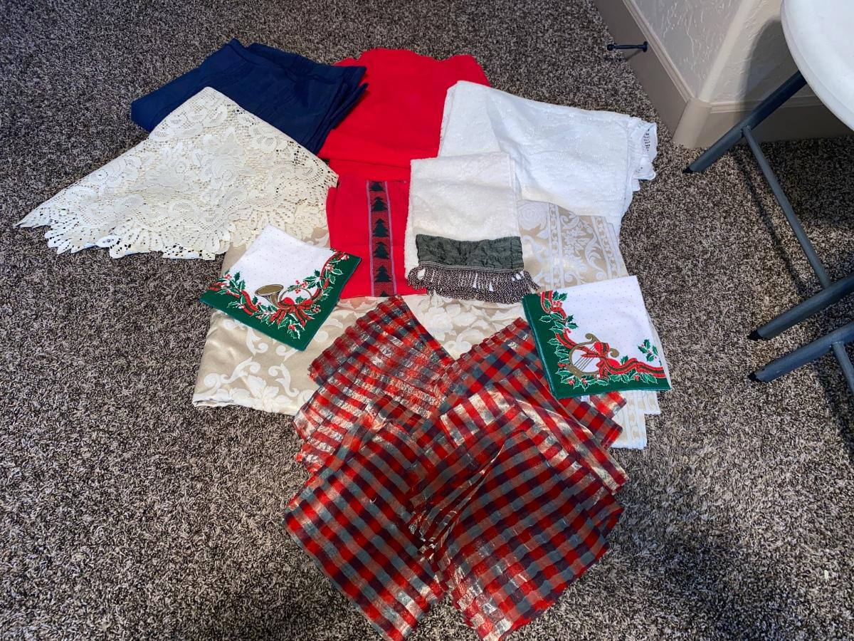 TABLECLOTHS , FESTIVE NAPKINS, AND OTHER PRETTY TABLE ACCENTING PEICES