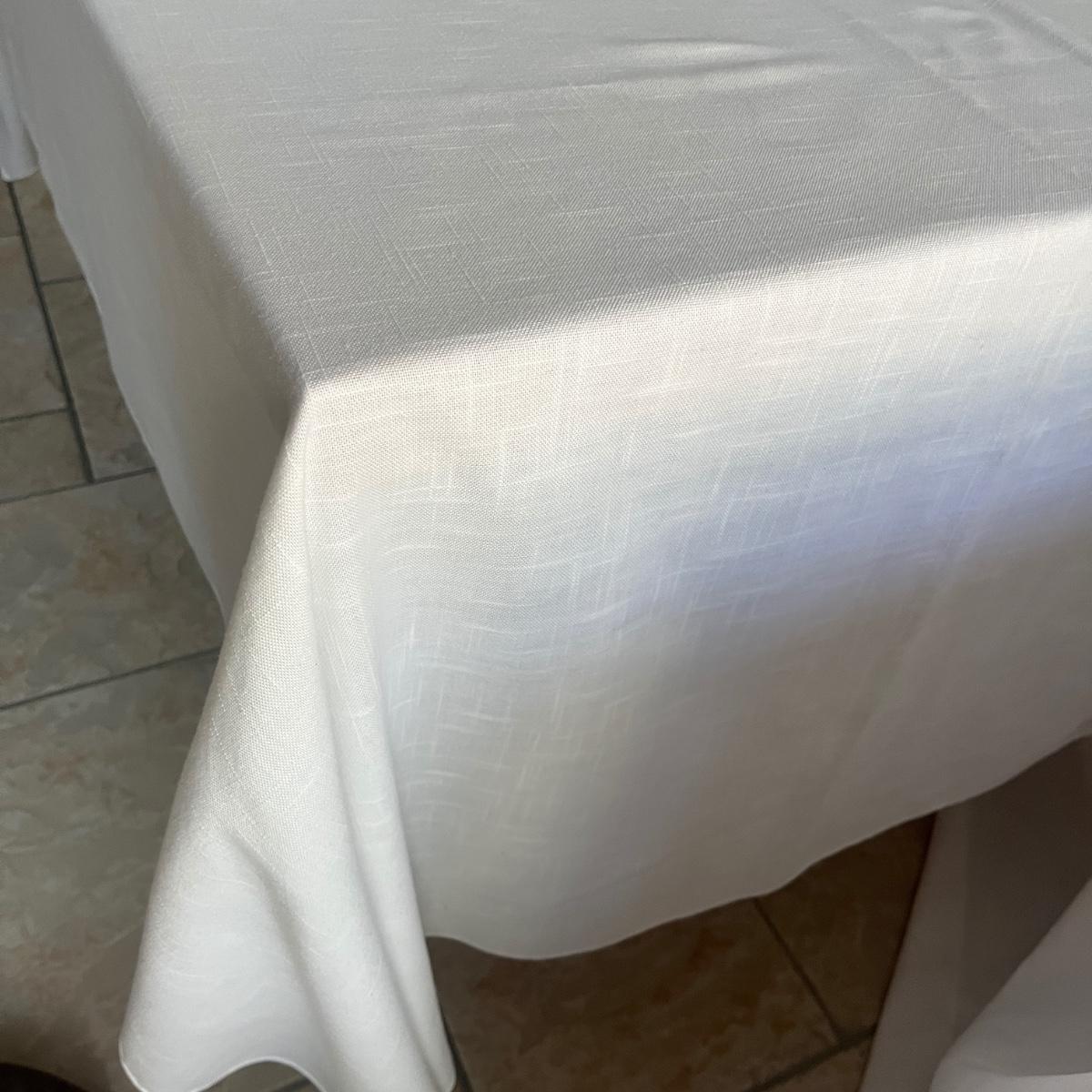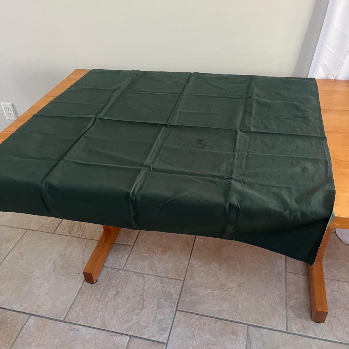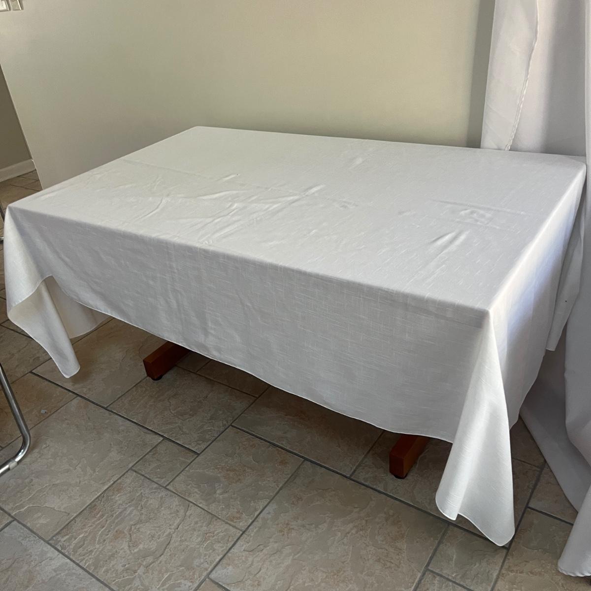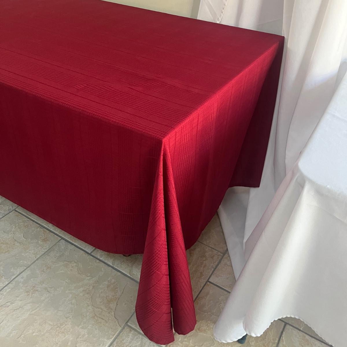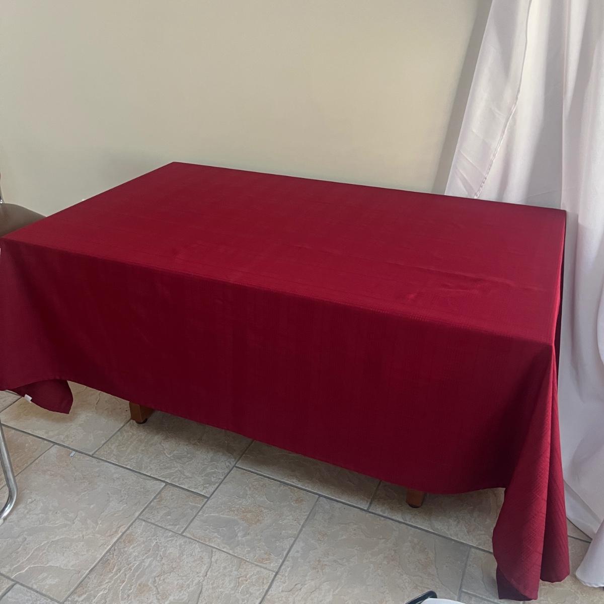 Lot includes five tablecloths with all tablecloths shown on a 60” x 36” table, four napkin rings in metal and plastic, five varieties of napkins and four different styles of tablecloths. Largest tablecloth measures 100” x 58”.