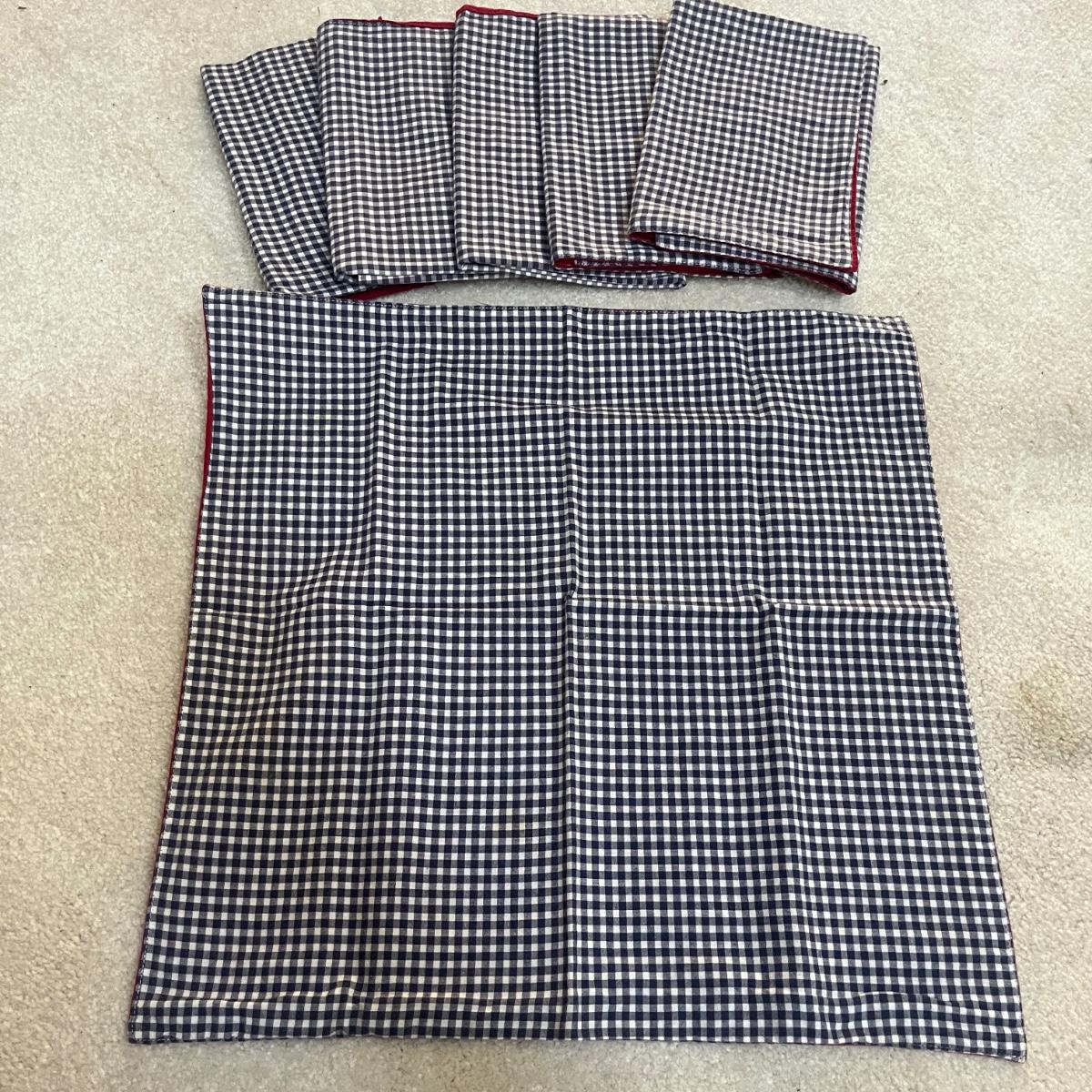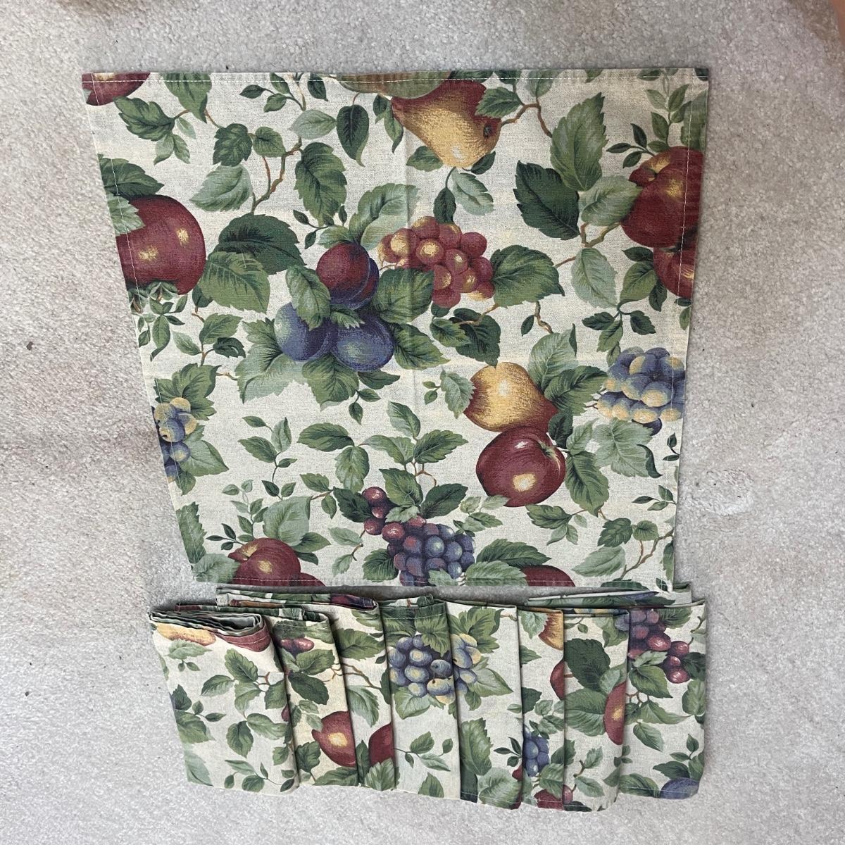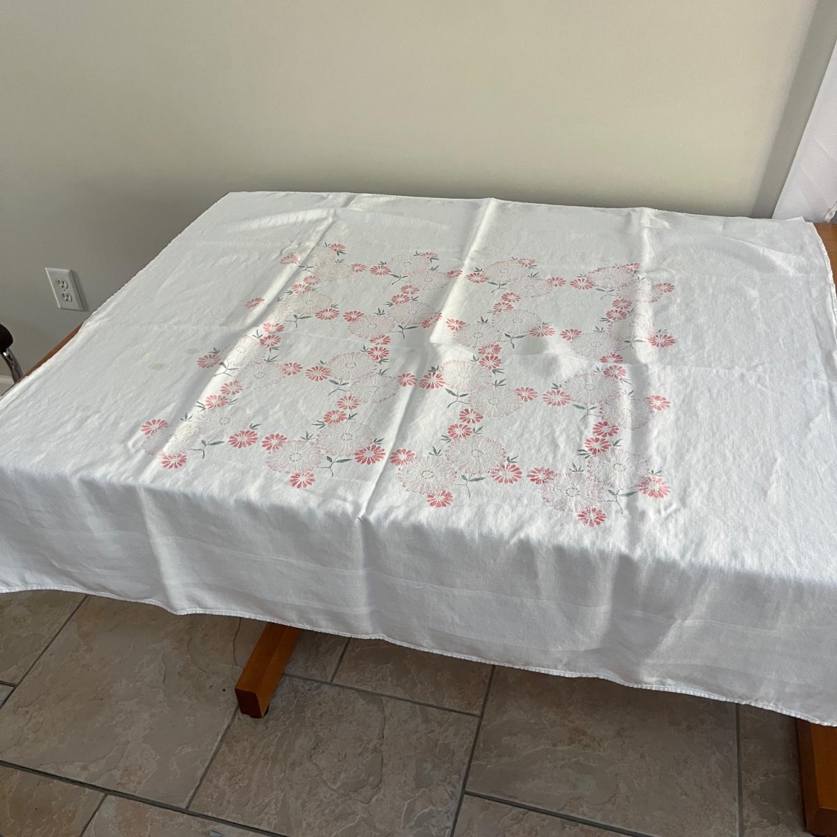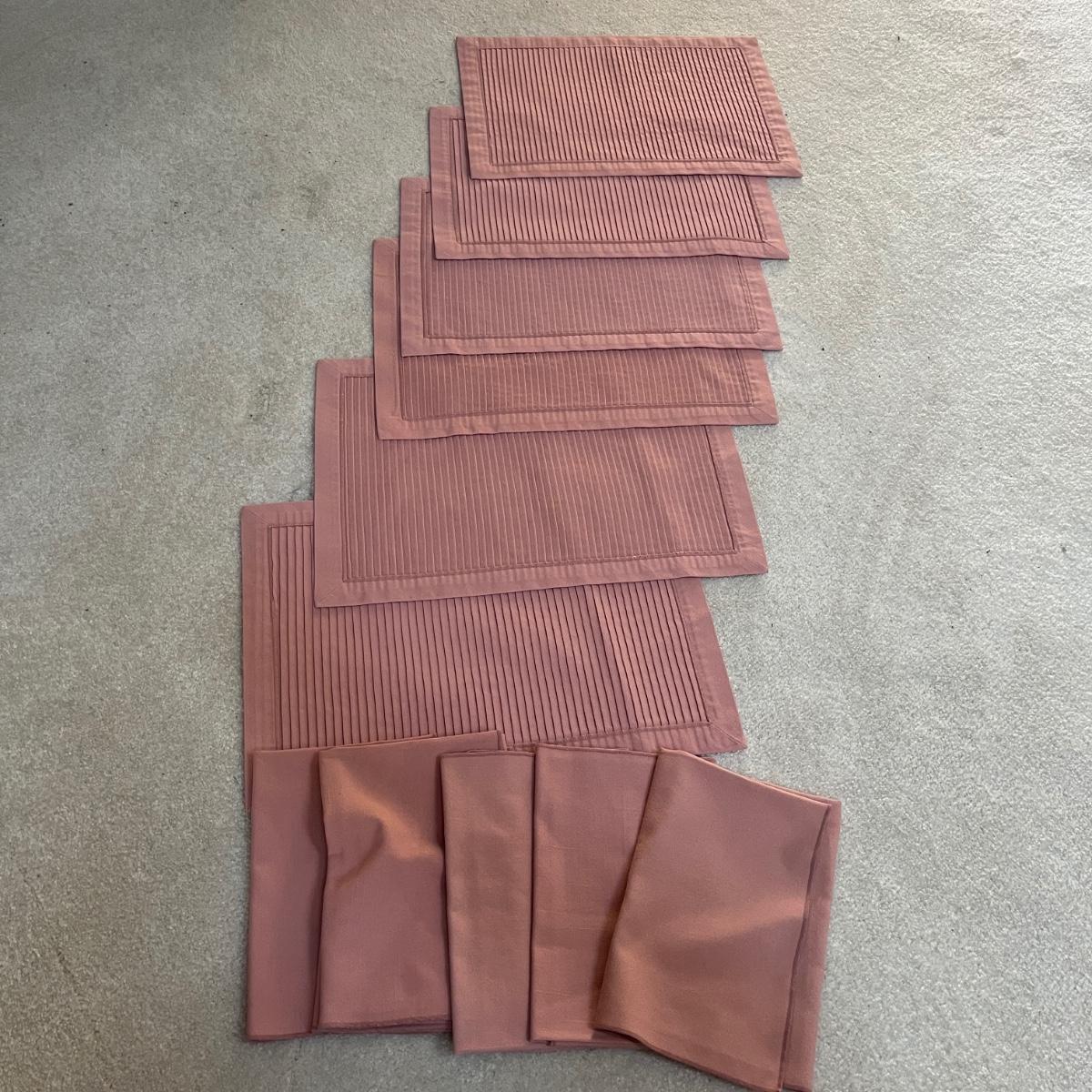 Lot includes five tablecloths with all tablecloths shown on a 60” x 36” table, four napkin rings in metal and plastic, five varieties of napkins and four different styles of tablecloths. Largest tablecloth measures 100” x 58”.