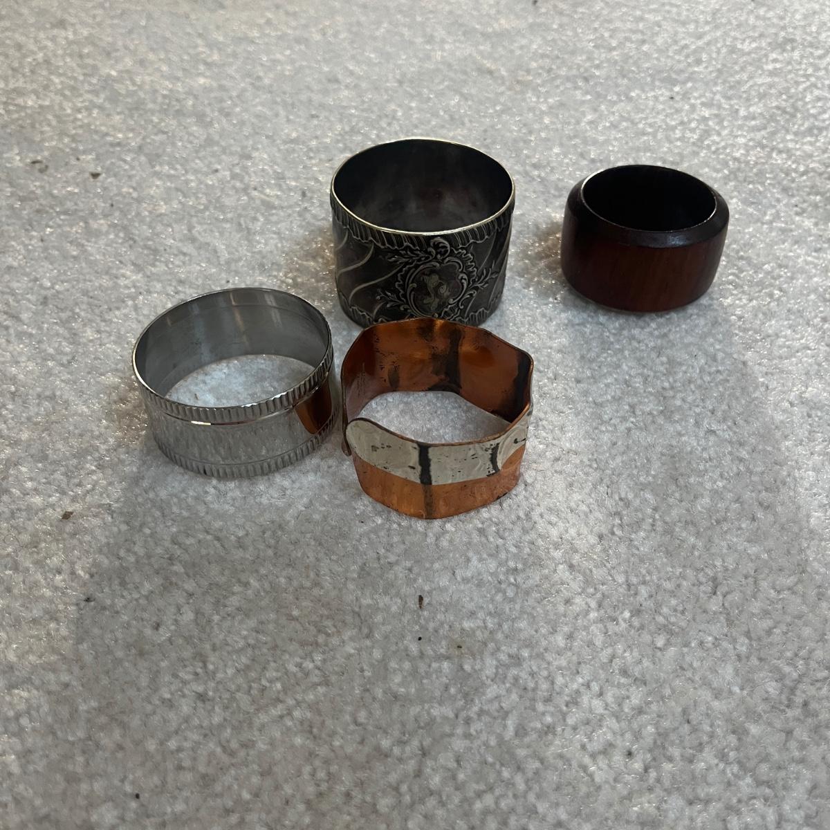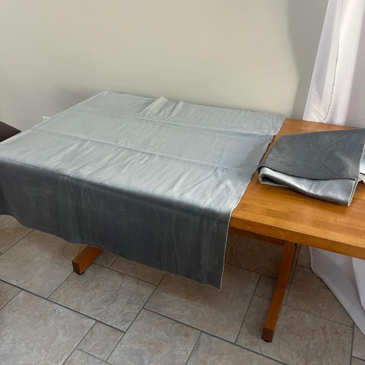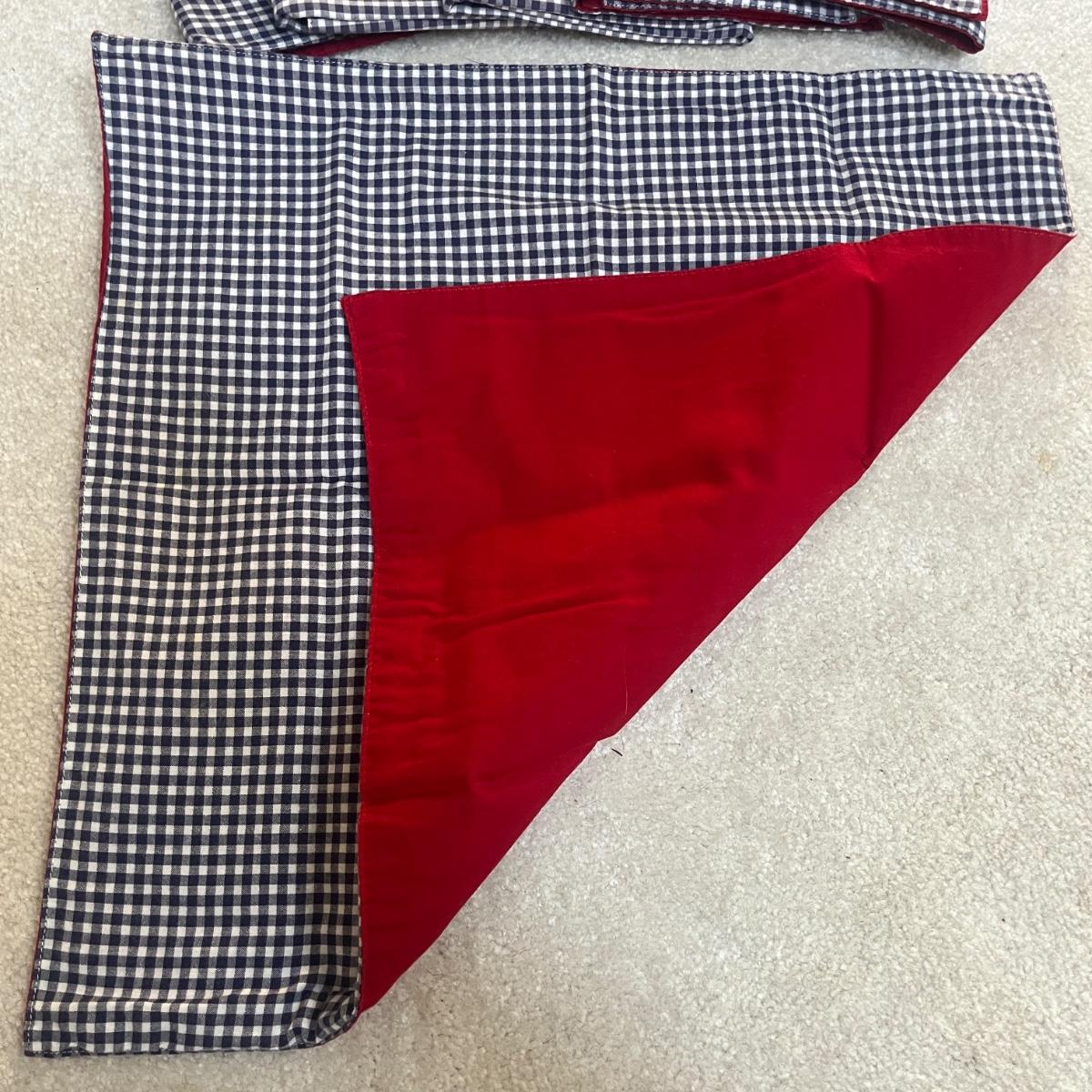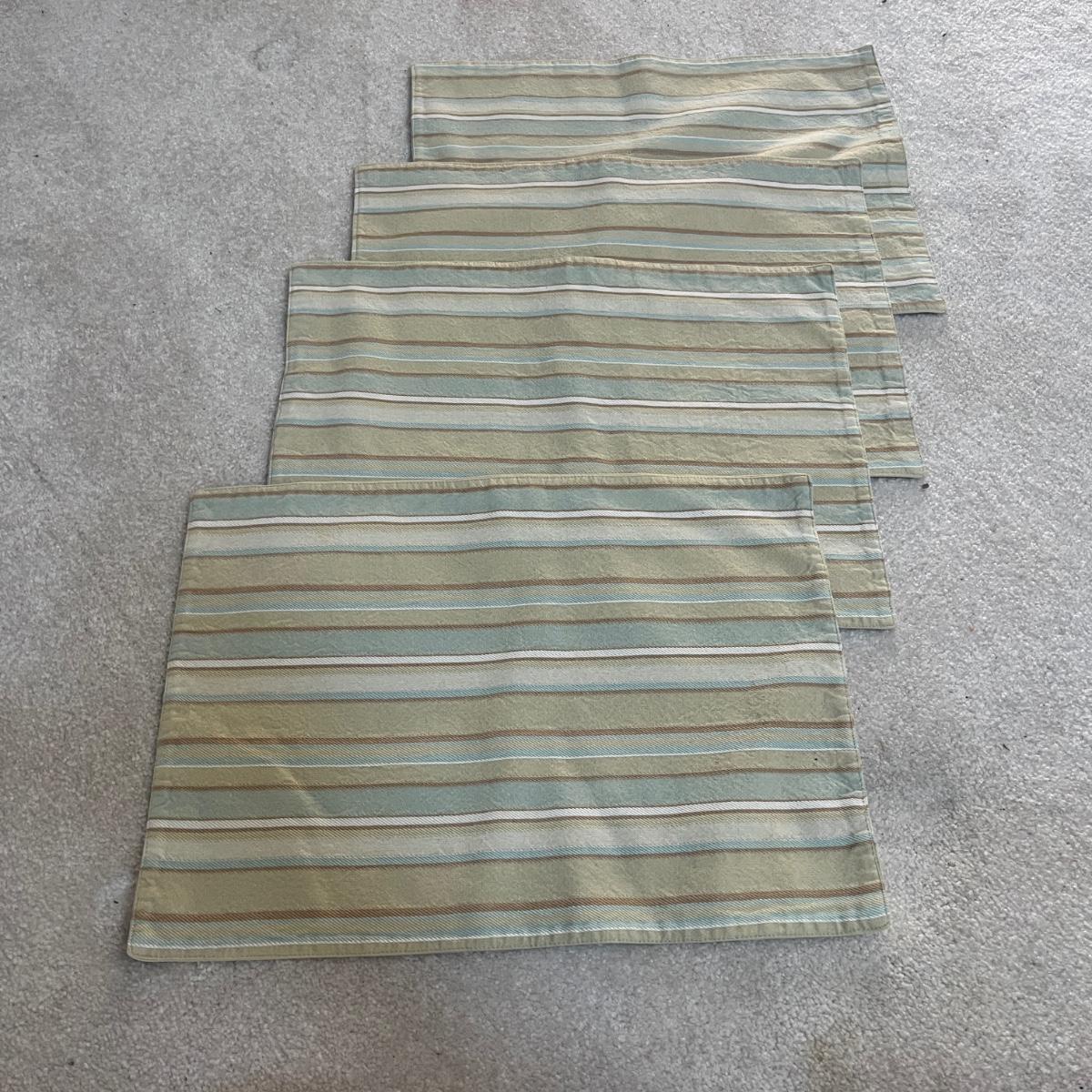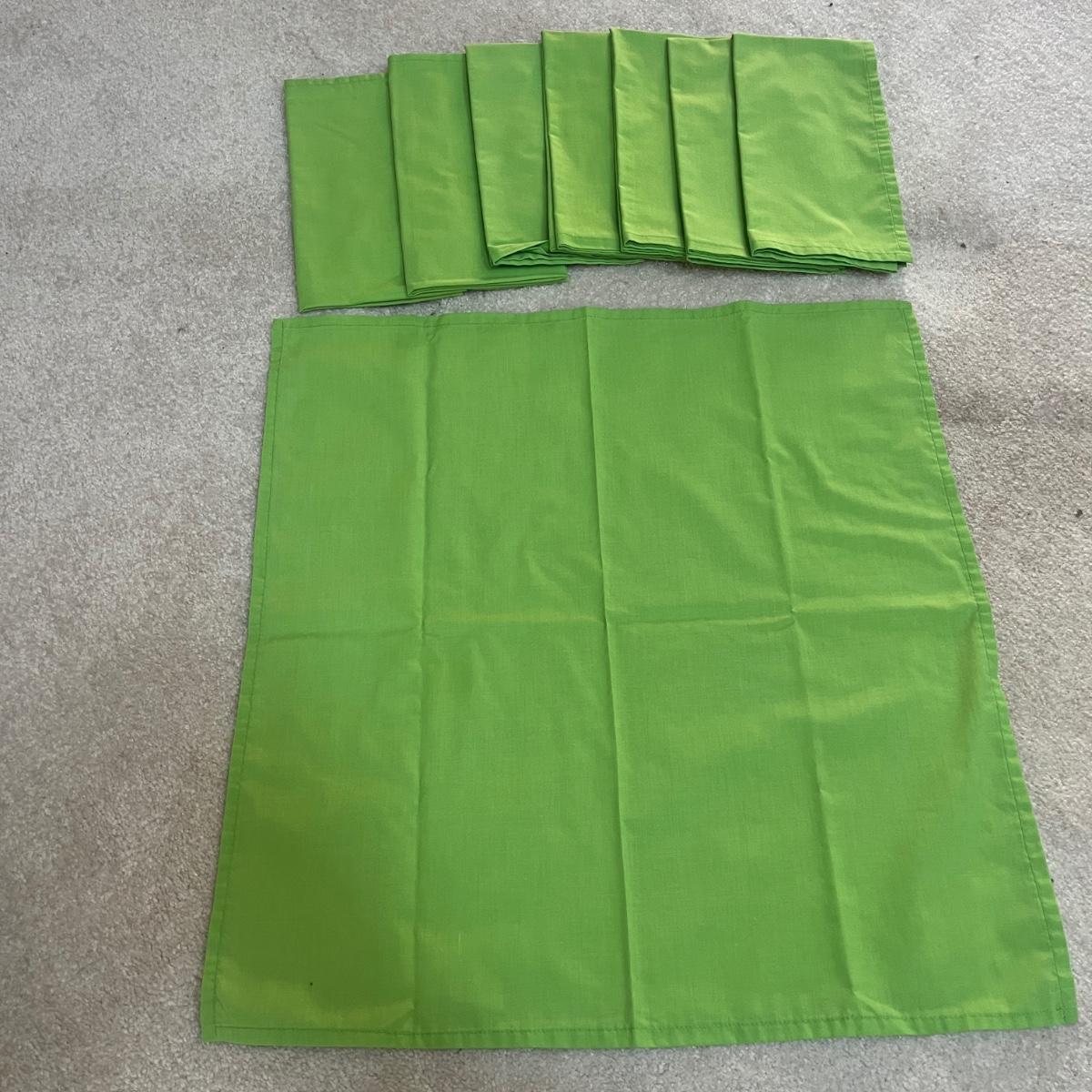 Lot includes five tablecloths with all tablecloths shown on a 60” x 36” table, four napkin rings in metal and plastic, five varieties of napkins and four different styles of tablecloths. Largest tablecloth measures 100” x 58”.