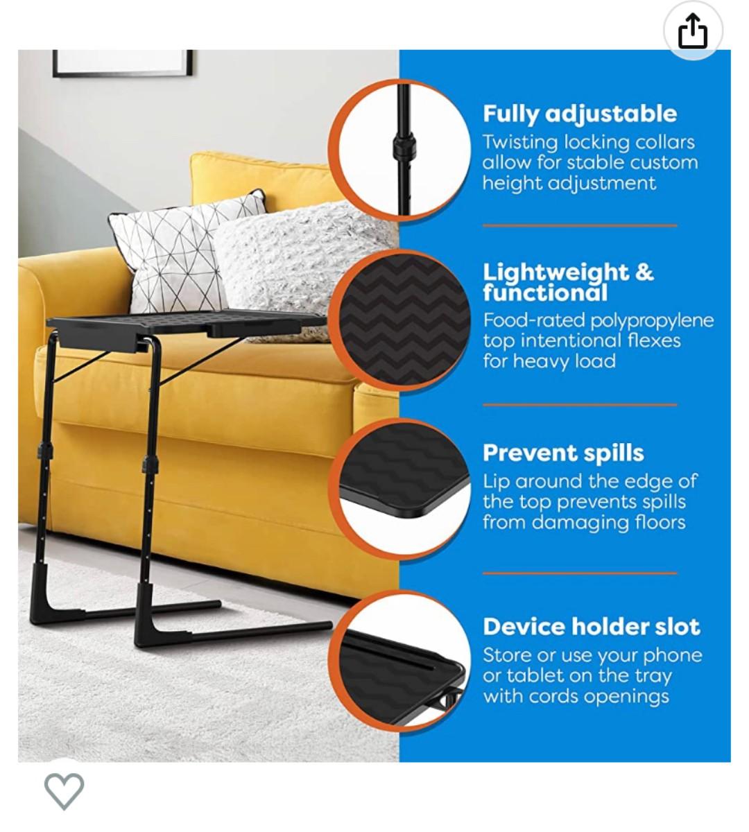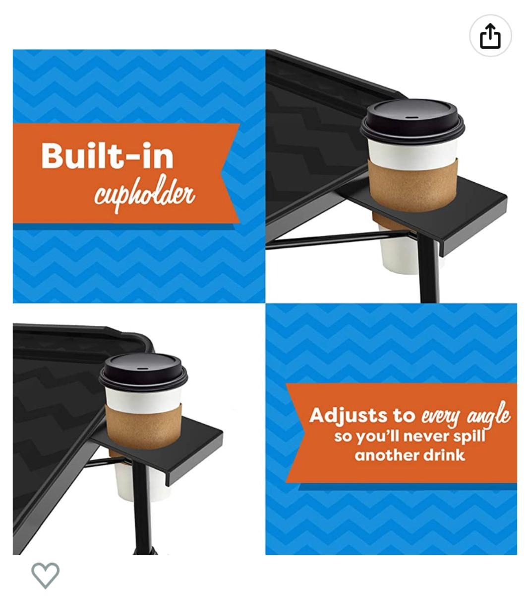 Table-Mate II PRO TV Tray Table - Folding Table with Cup Holder and Tablet Slot- Couch Desk for Working from Home, TV Trays for Eating, Portable and Adjustable TV Table, Black