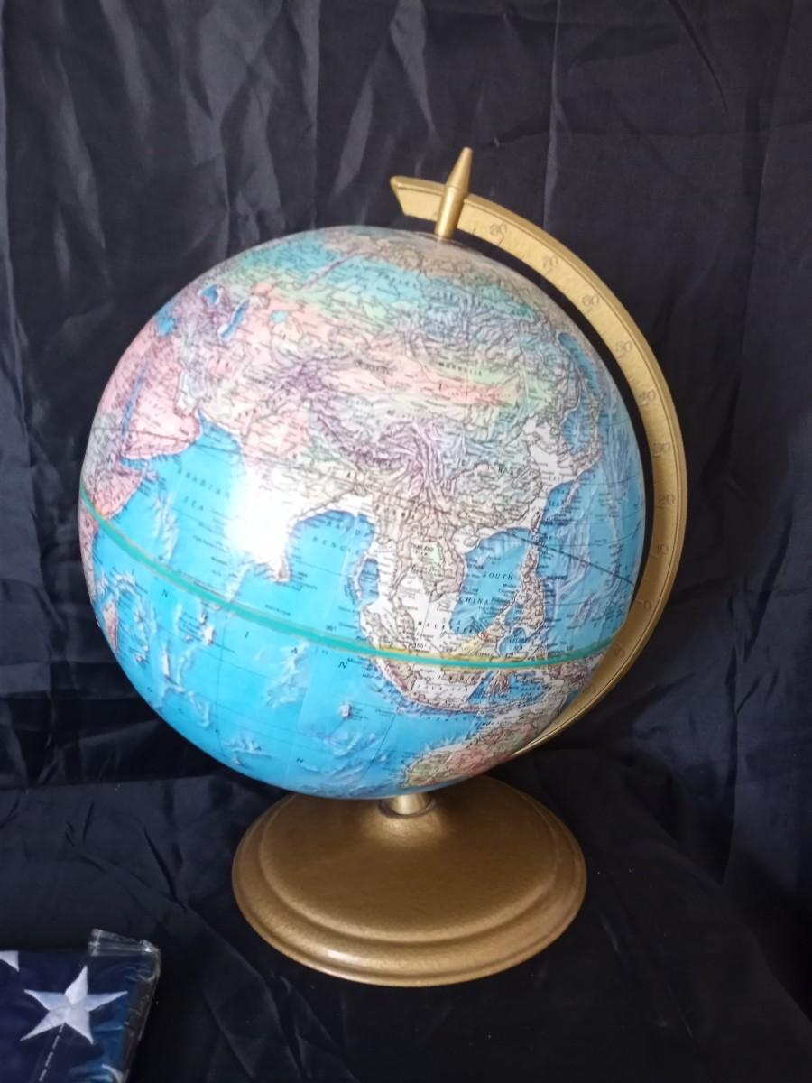 TABLETOP WORLD GLOBE APPROX, 17" AND NEW FLAG