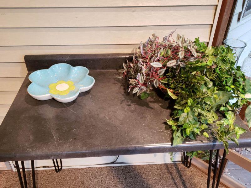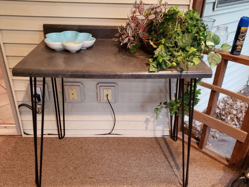 Counter top made into table /workspace with hairpin legs.