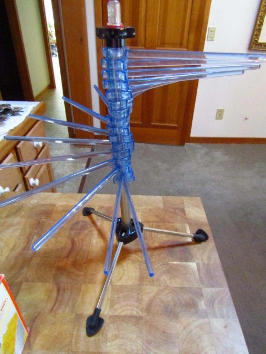 Tacapasta Pasta Drying Rack. Tripod legs fold in for easy storage.