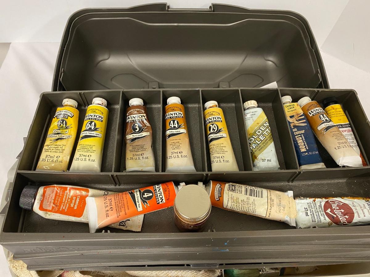 Tackle box art supply lot, tackle box filled with art supplies as pictured