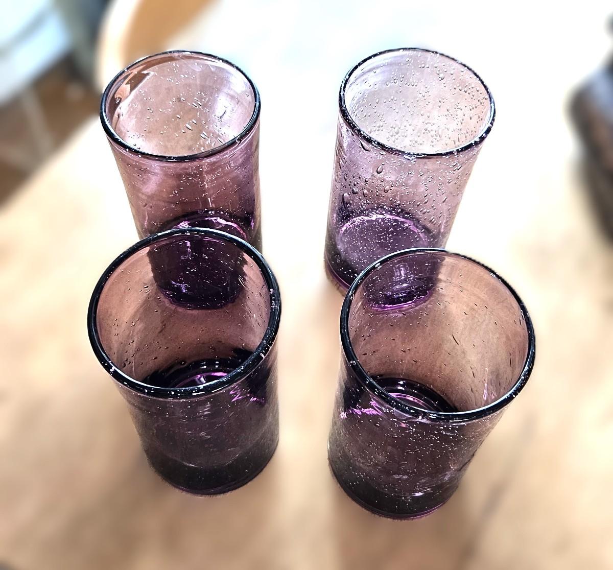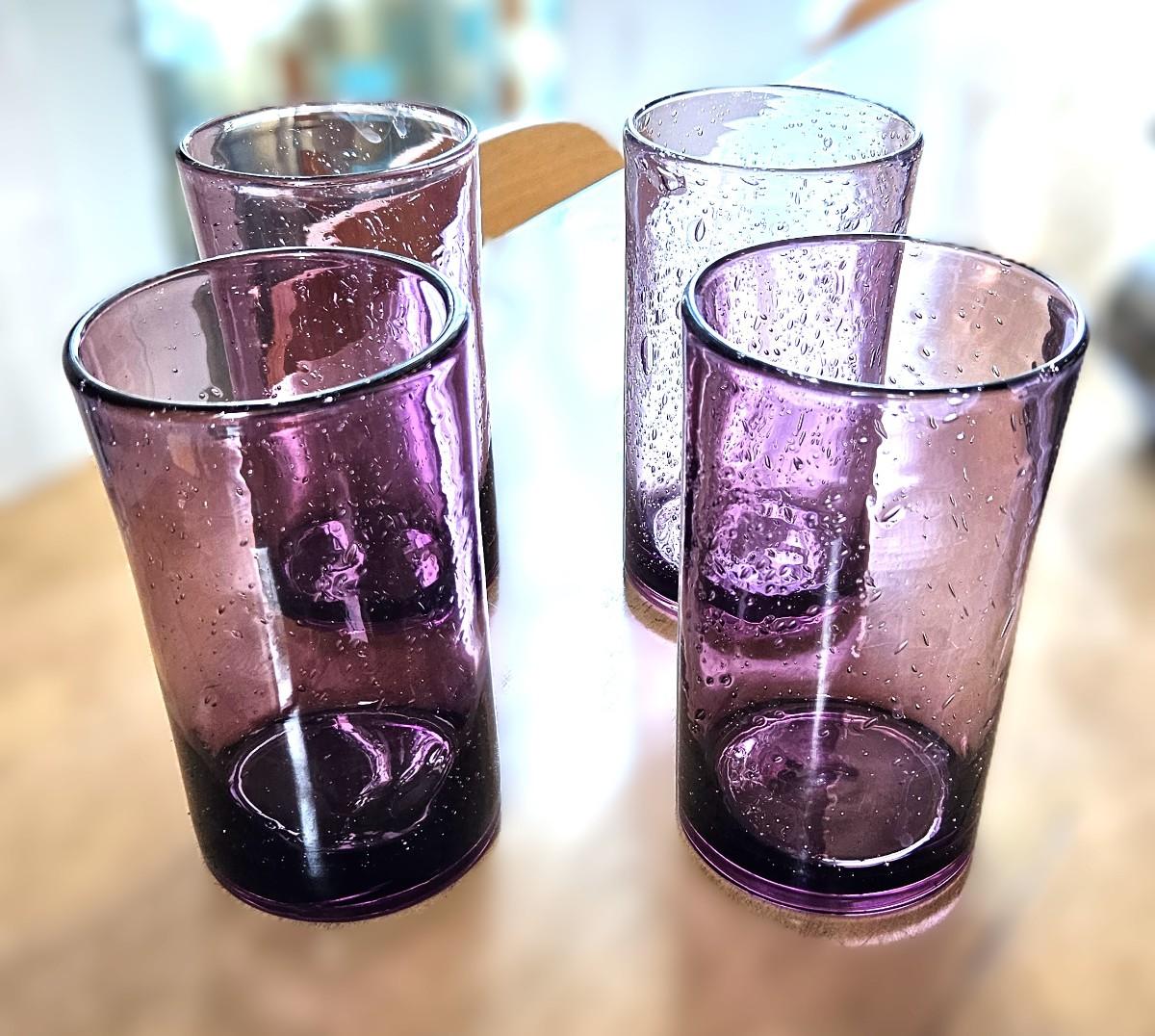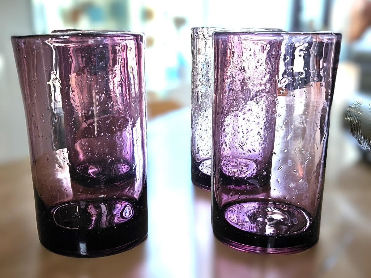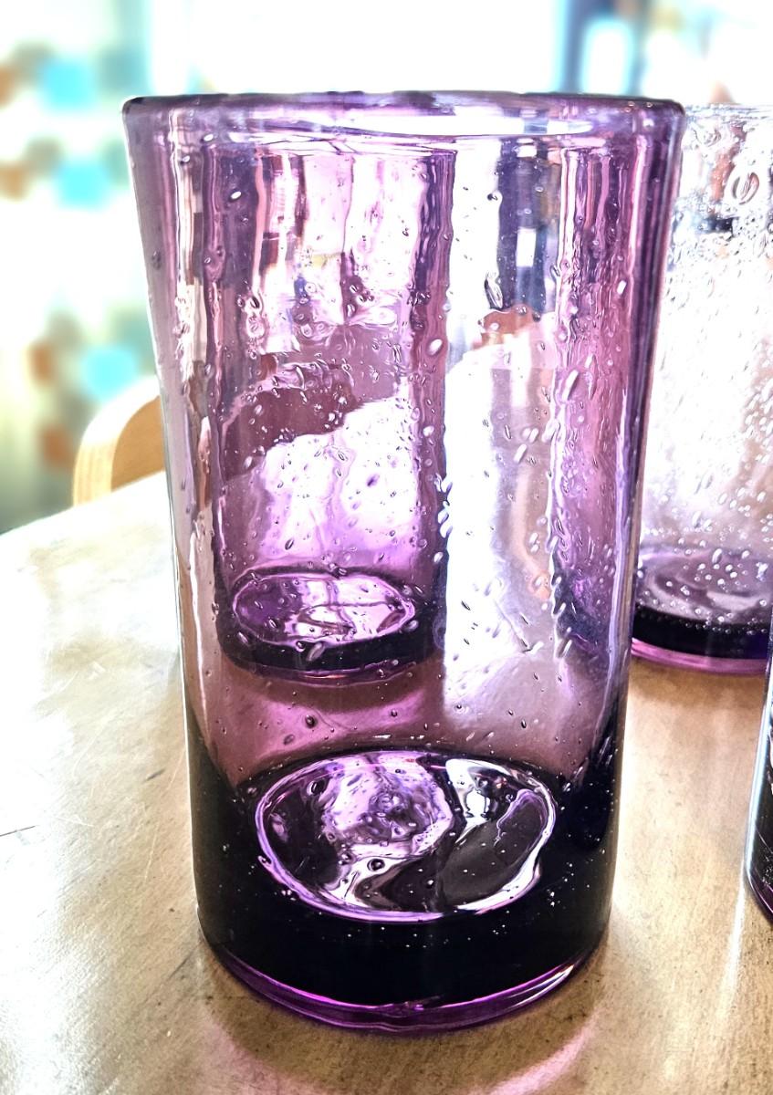 Tag Ltd Flat Tumbler 16 Oz Plum Bubble Glass Colored Blown Purple Glass 5.5”, 6H