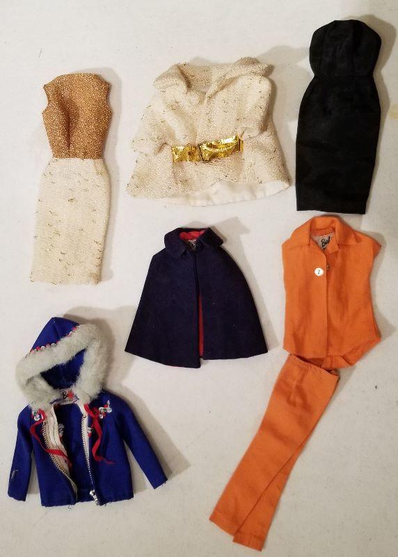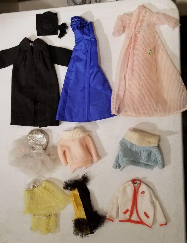 Tags marked Barbie - lot of clothes. Loved and played with condition.