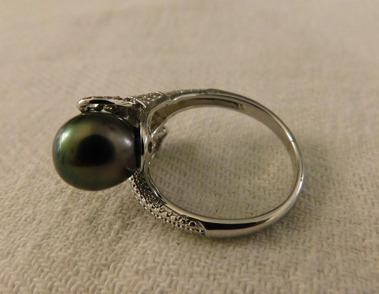 Tahitian Pearl Bypass Ring Size 9.5 with White Zircon Accent