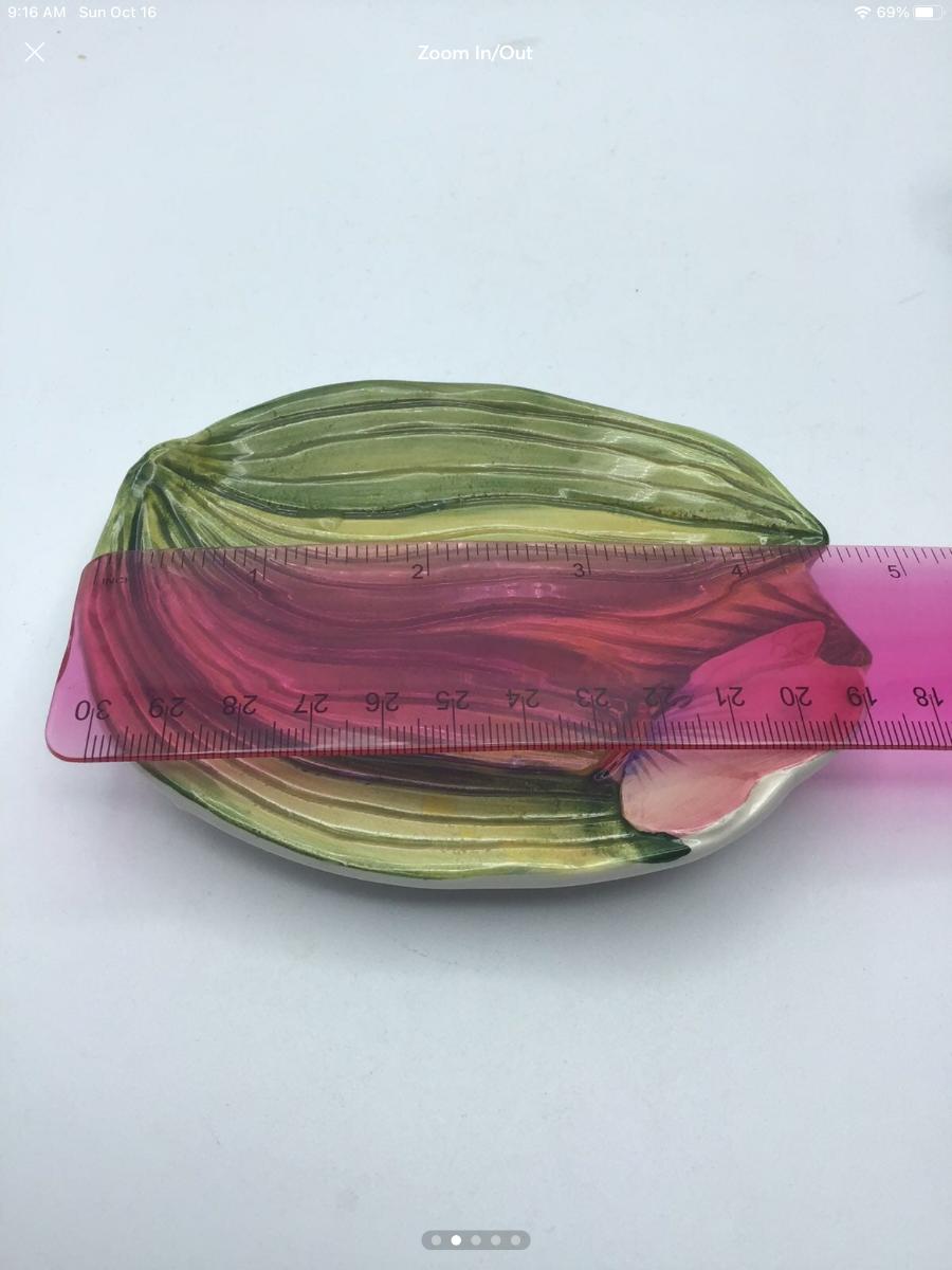 Approximately 4.5"; Tiny chip in the white by the butterfly's wing