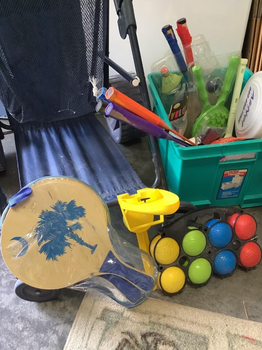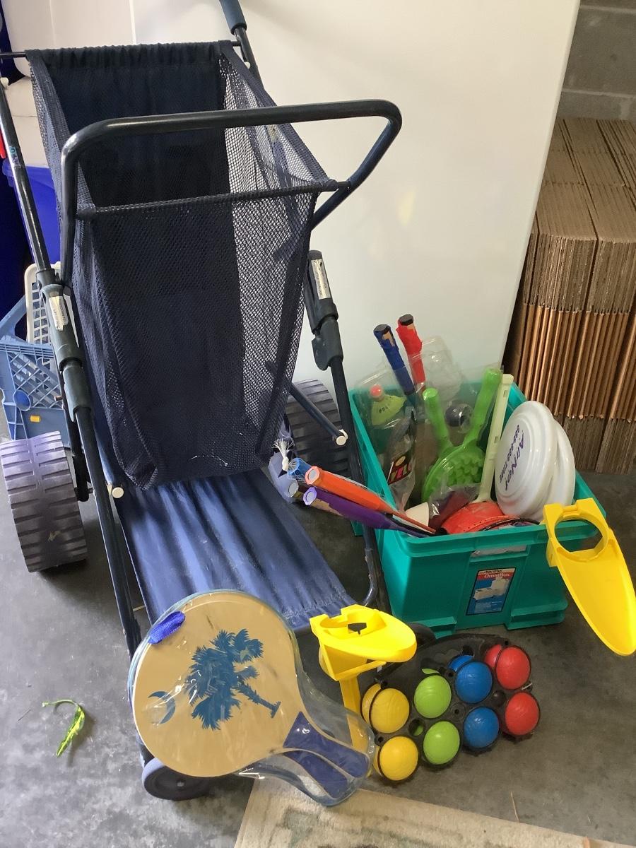 Take It to the Beach Lot- Beach Cart, Badminton, Frisbee, Velcro Catch, Portable Shade, Pillow, etc