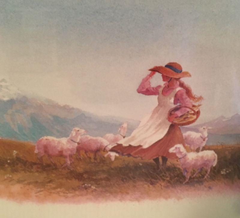 Taking the sheep to pasture by M. Wyatt - Pastel Color -Girl with Sheep Limited Ed 123/750, Frame is a gold color Brass