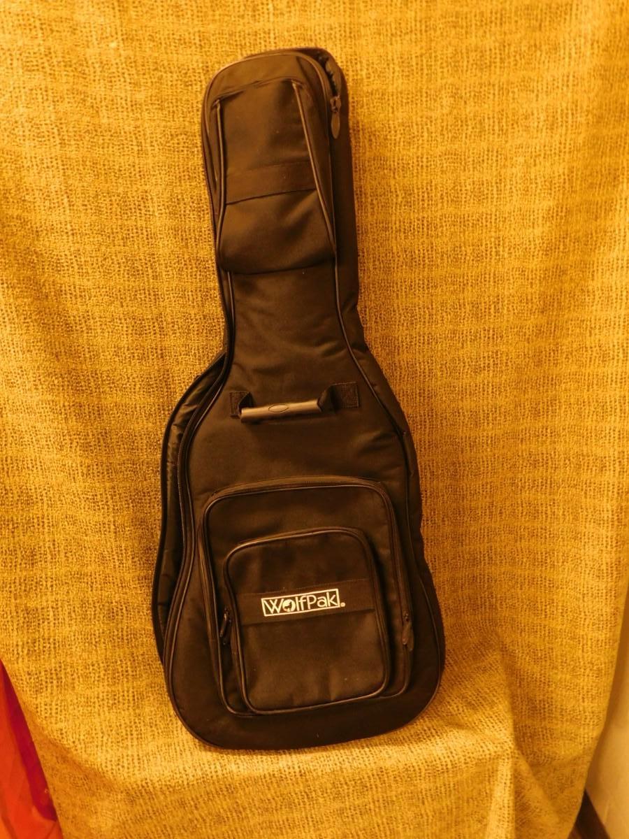 Comes with on board tuner with bass, middle, treble, and gain adjustment. The Gig bag is from Wolfpak (Lots of storage). In good working condition, tested! Model #GY11 ME-NS