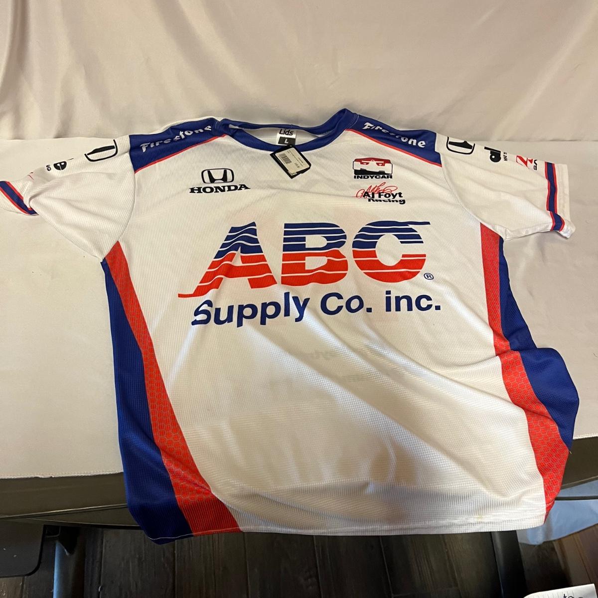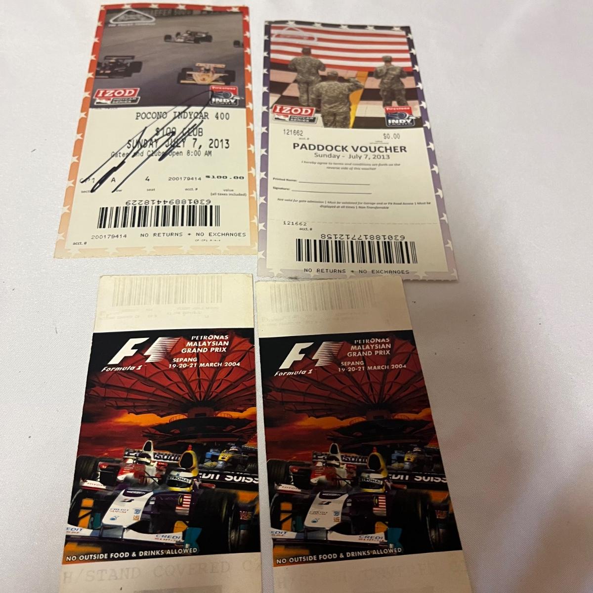 Lot includes a Takuma Sato Indy Car Shirt size large & Formula 1 tickets and lanyards and more. A couple items have autographs.
