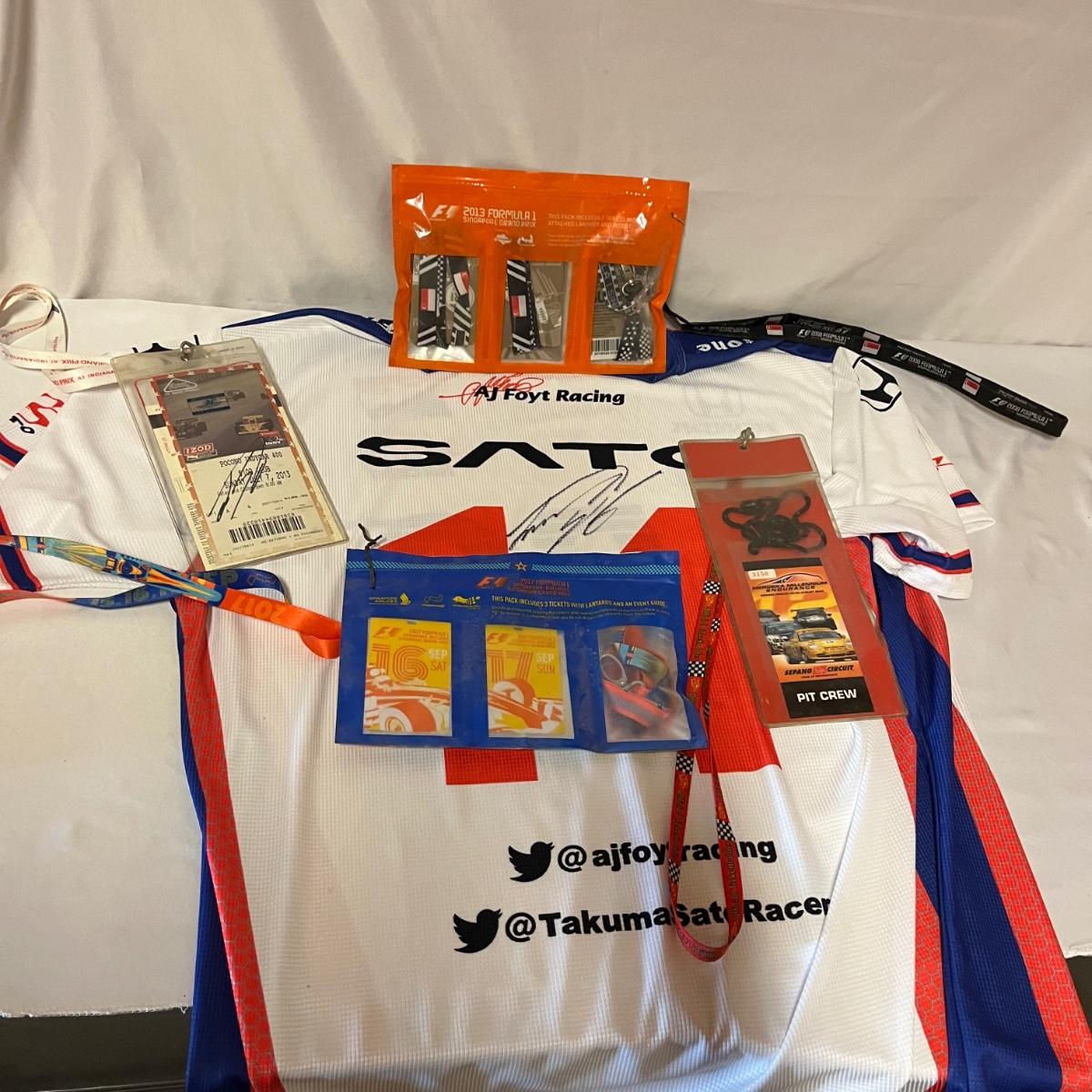 Autographed Takuma Sato Indy Car Shirt & Formula One Tickets & Lanyards (O-MG)