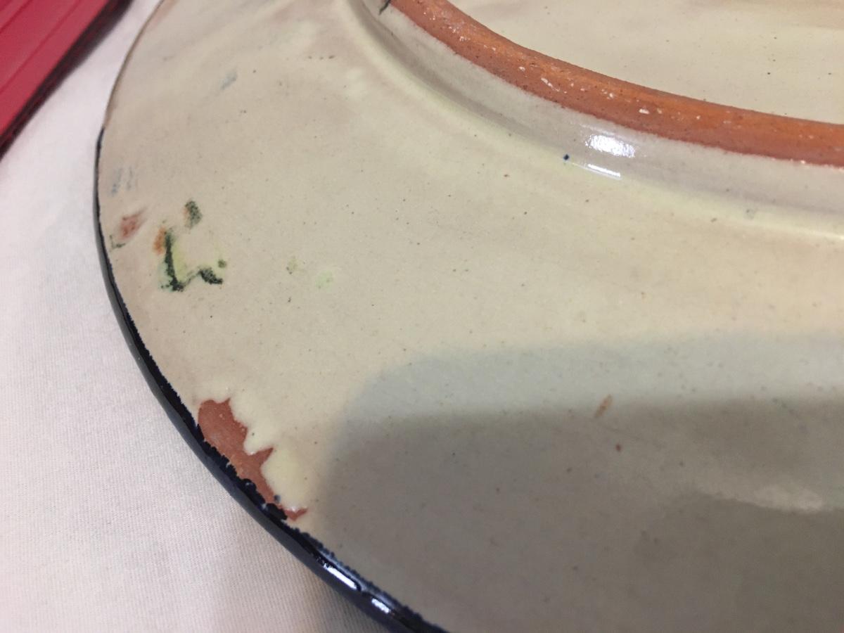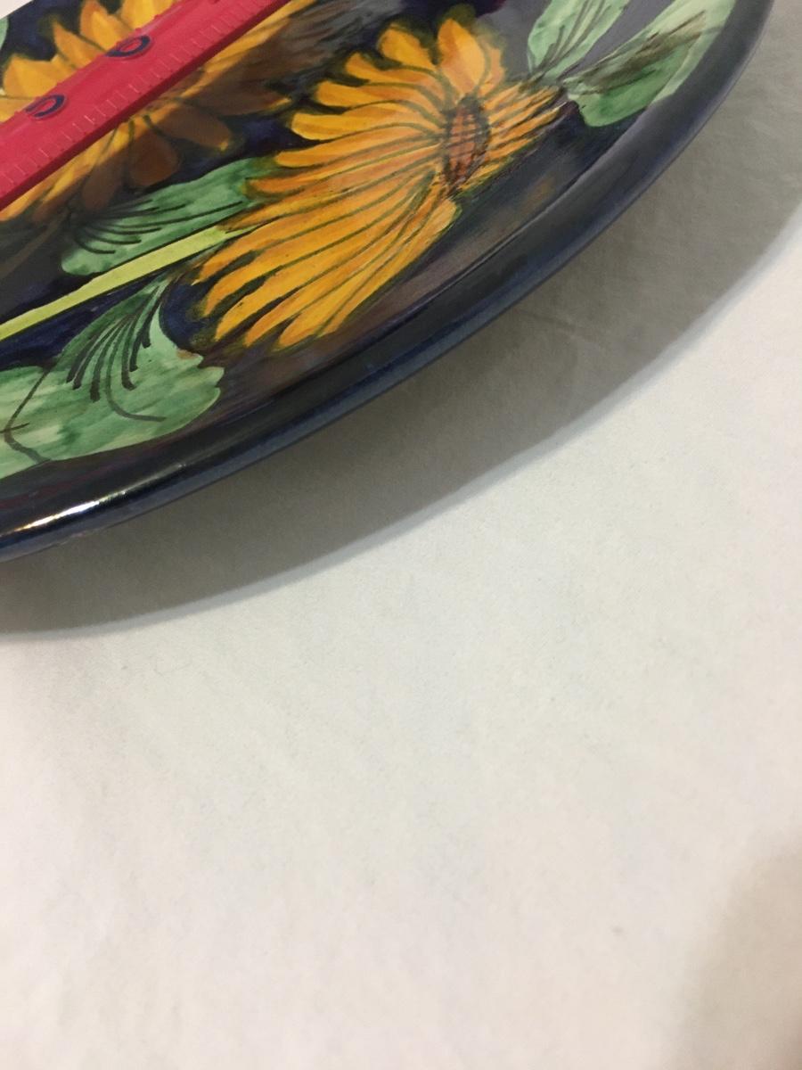 Excellent. No chips or cracks. Edge glaze not covered. Looks like chip but it’s not