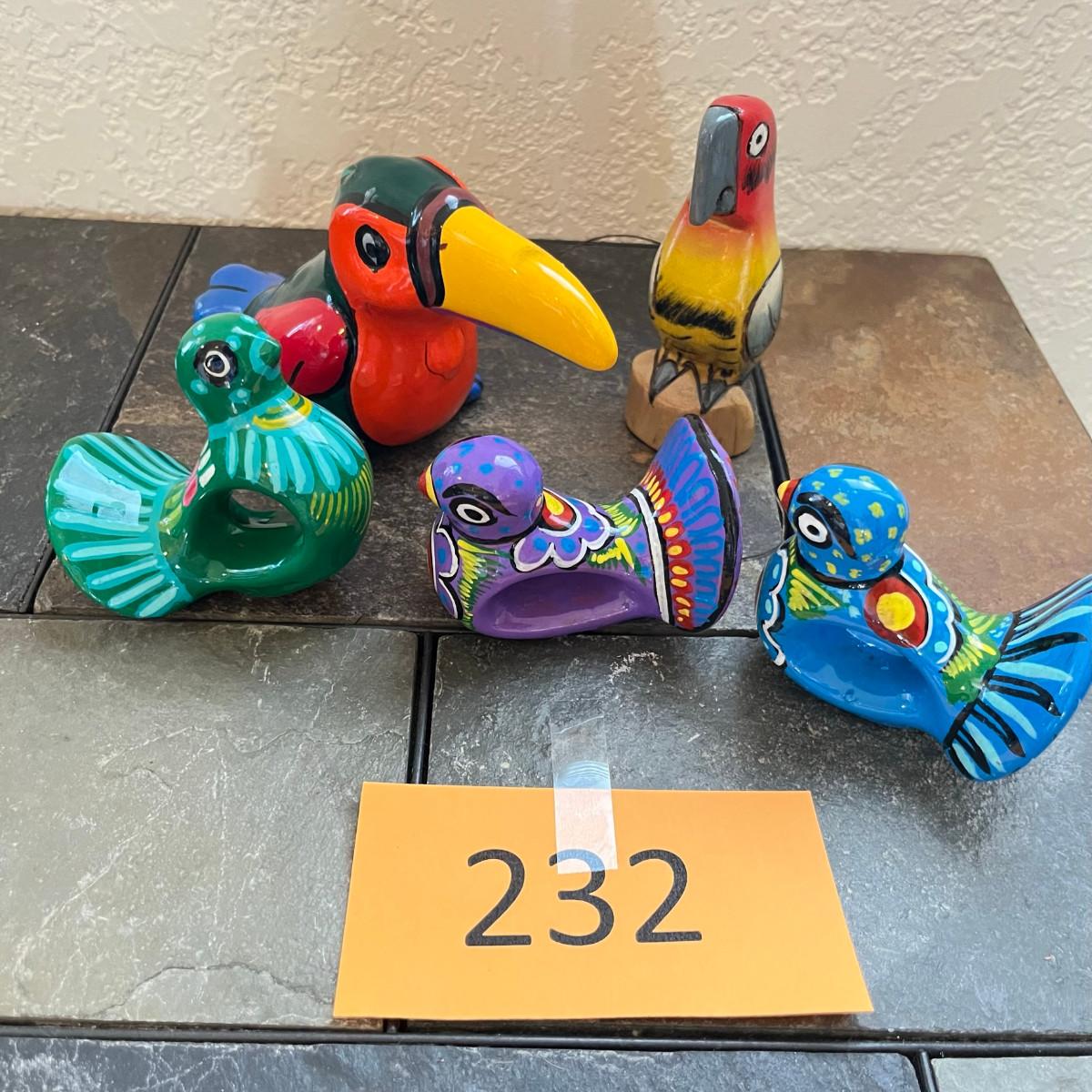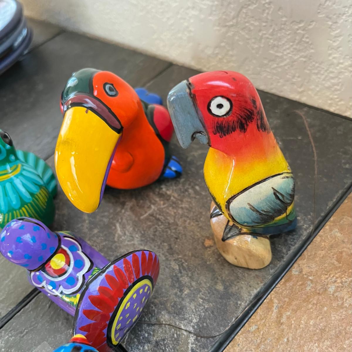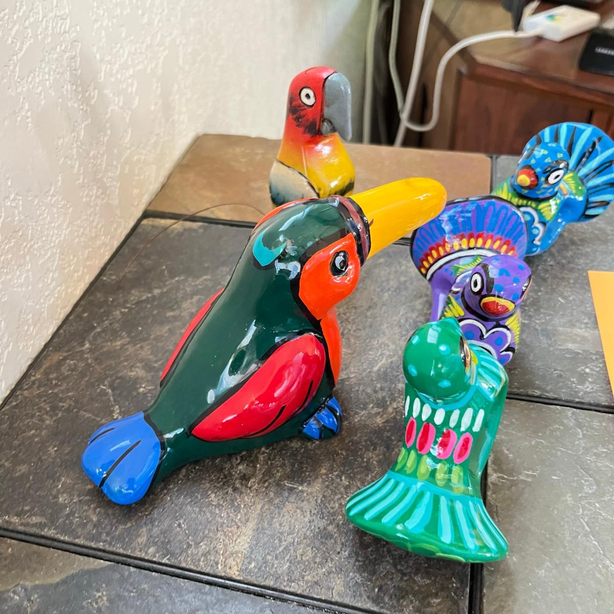 These pieces are Talavera style, but may be signed by other makers. Great for color, no damage! The other birds are wood carved.