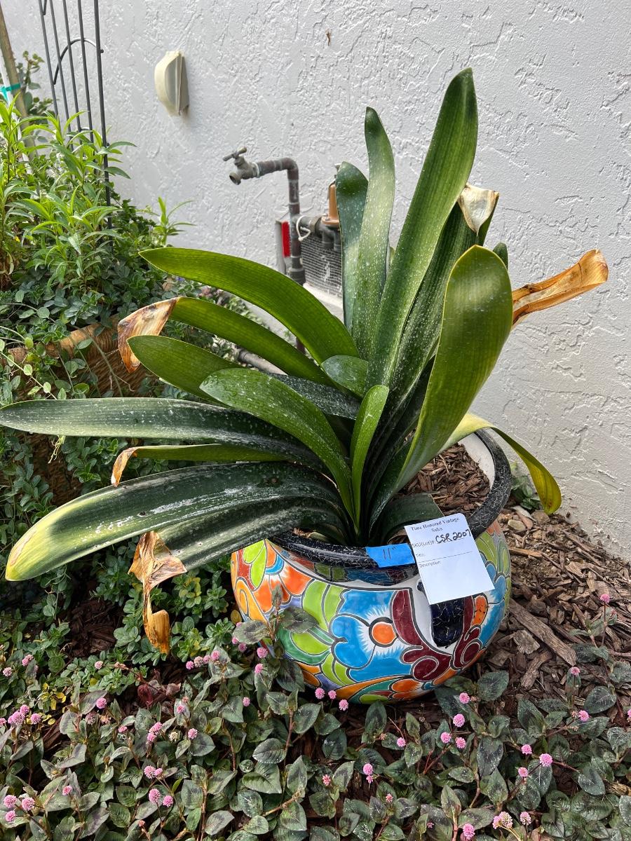 Mexican Pottery Talavera planter with minor wear and chip includes potted orchid
