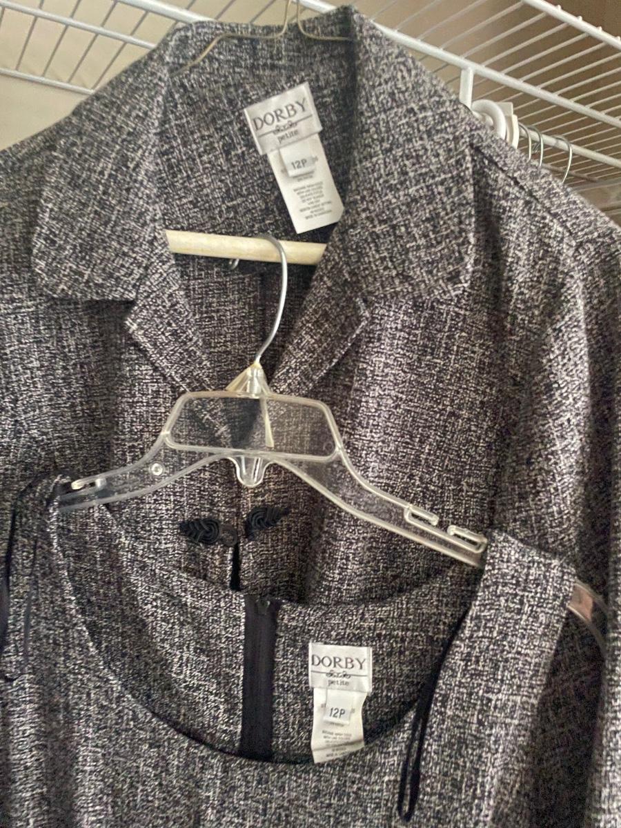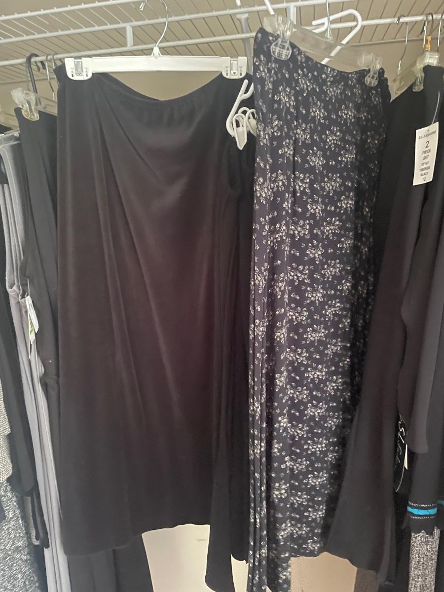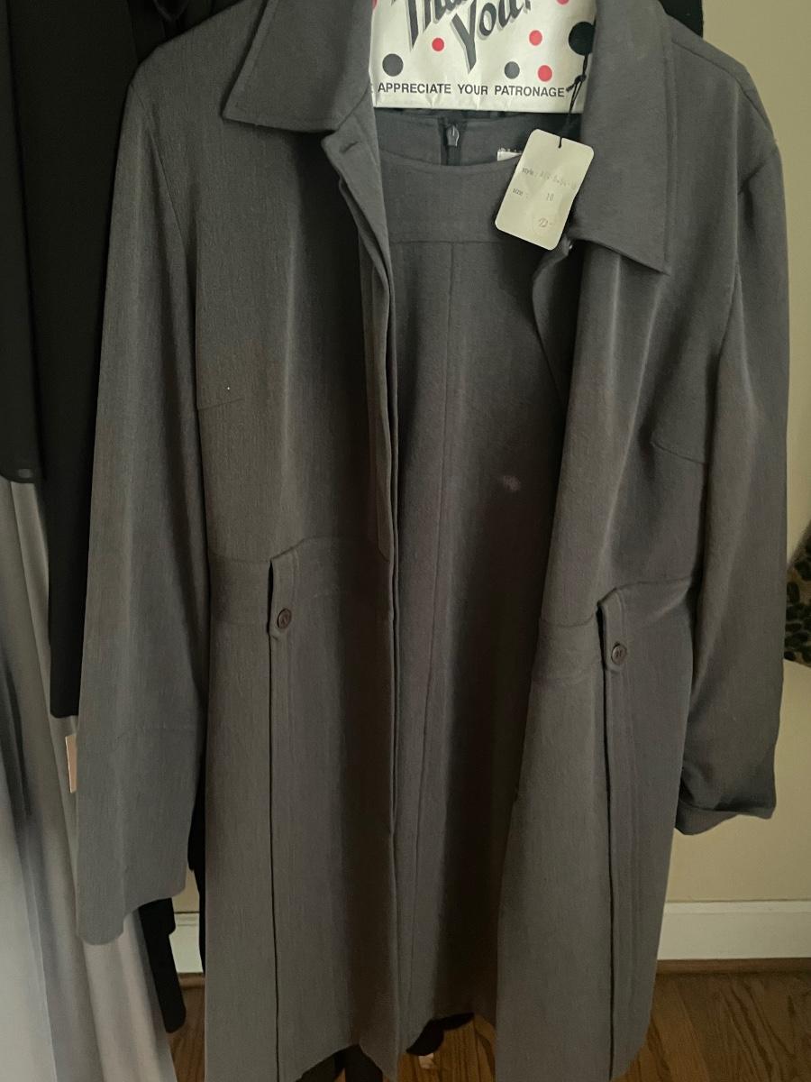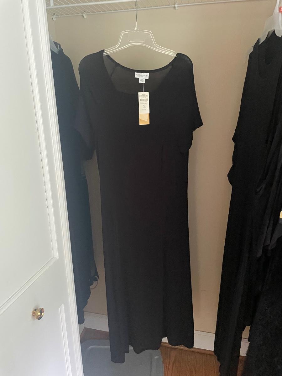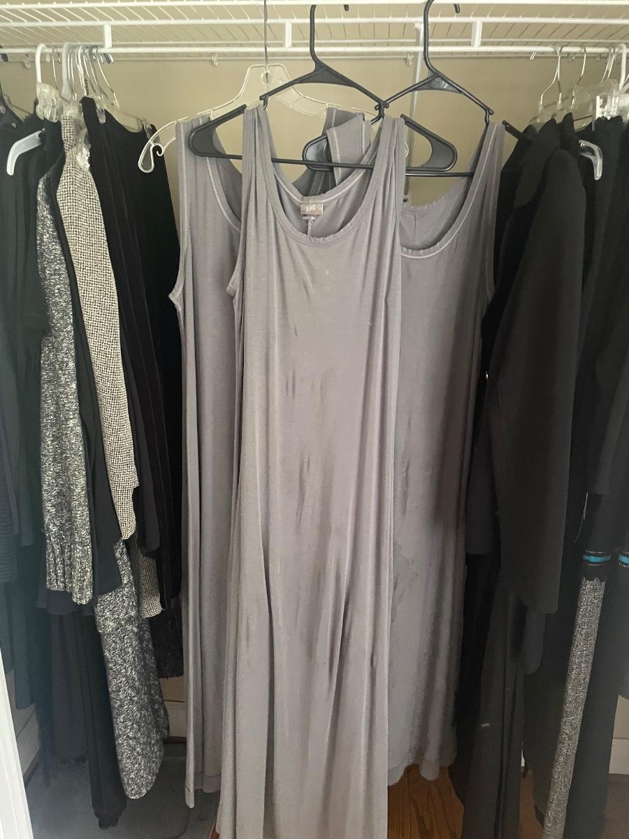 This huge lot has some great name brands and dressy plus casual dresses, shirts, pants and two-piece outfits with lots that are NWT. See images for sizes, brands and tags. Note one skirt (skirt with blue embroidered hemline) has a stain that looks like it should come clean with washing. There are 3 matching J. Jill grey dresses size small and medium.
