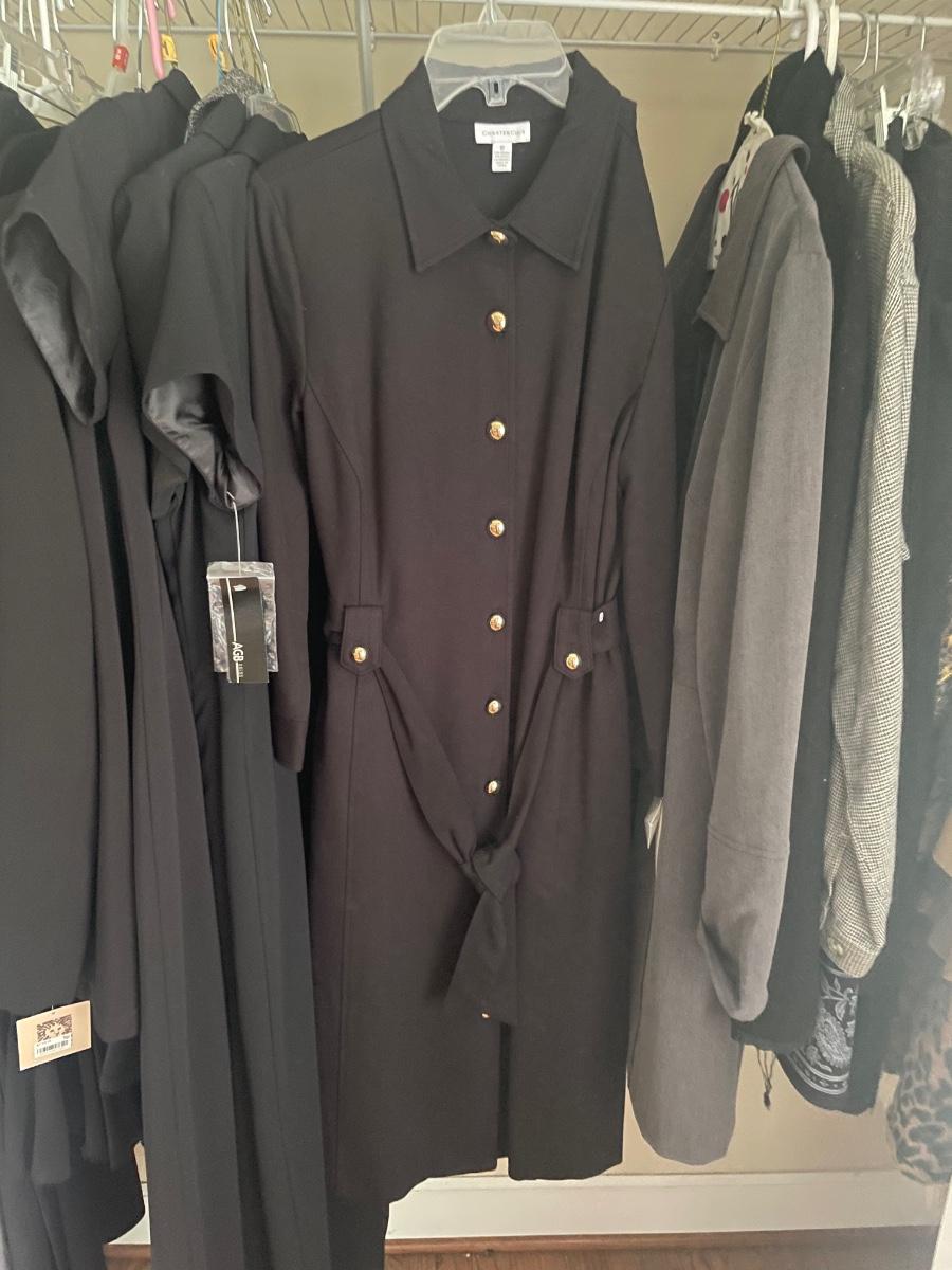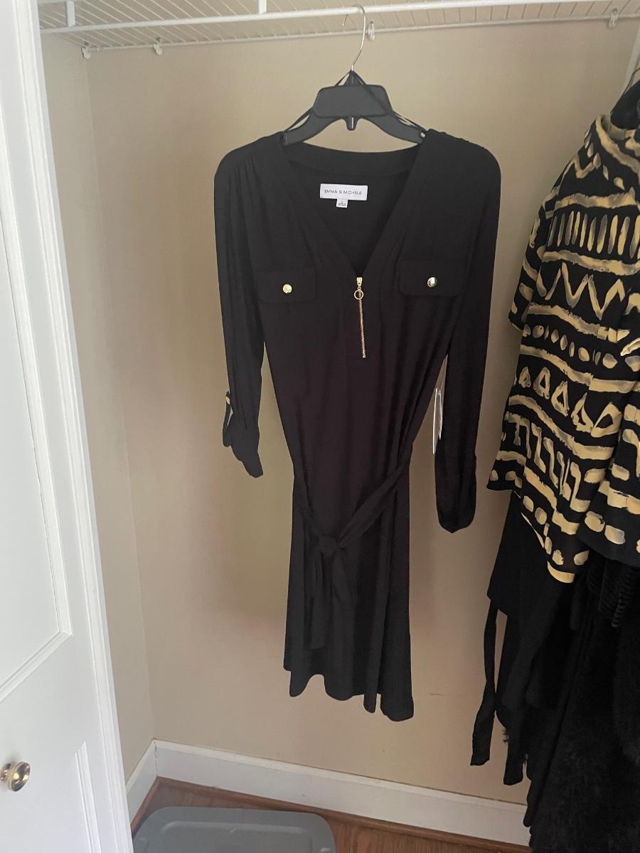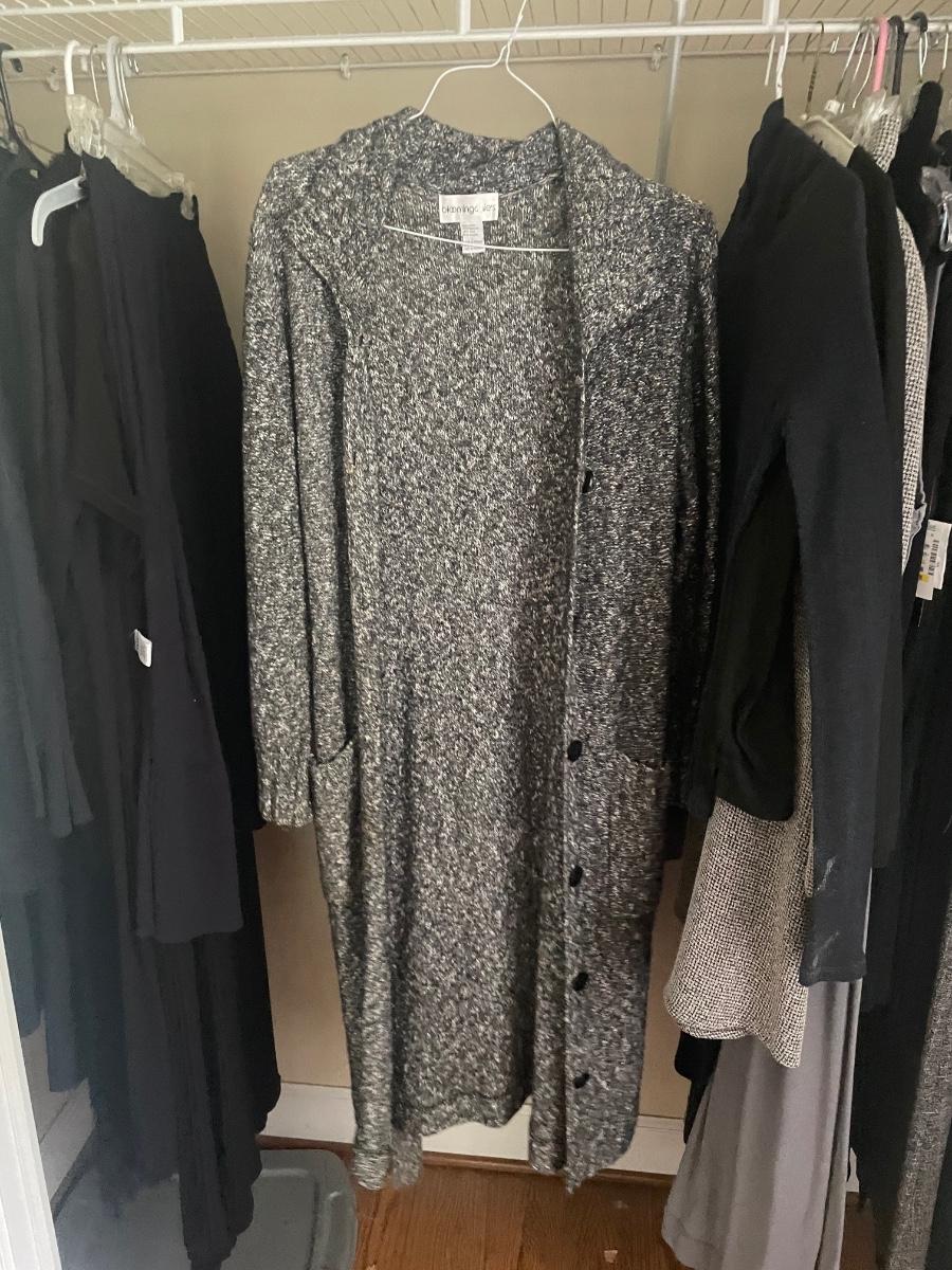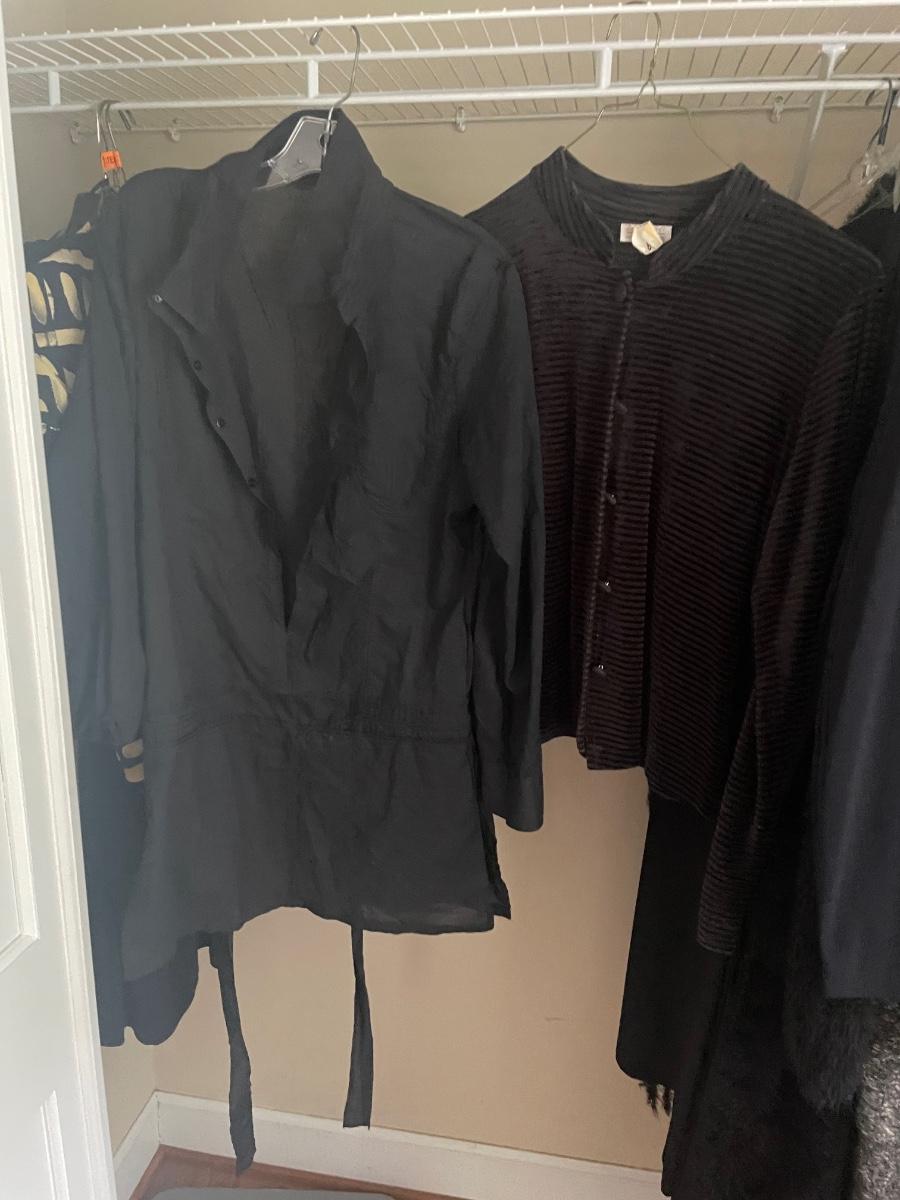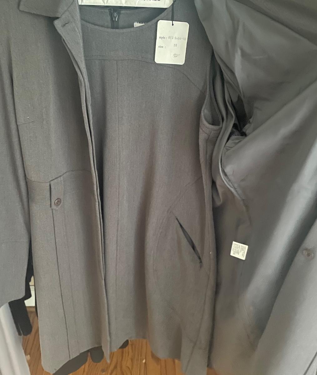 This huge lot has some great name brands and dressy plus casual dresses, shirts, pants and two-piece outfits with lots that are NWT. See images for sizes, brands and tags. Note one skirt (skirt with blue embroidered hemline) has a stain that looks like it should come clean with washing. There are 3 matching J. Jill grey dresses size small and medium.