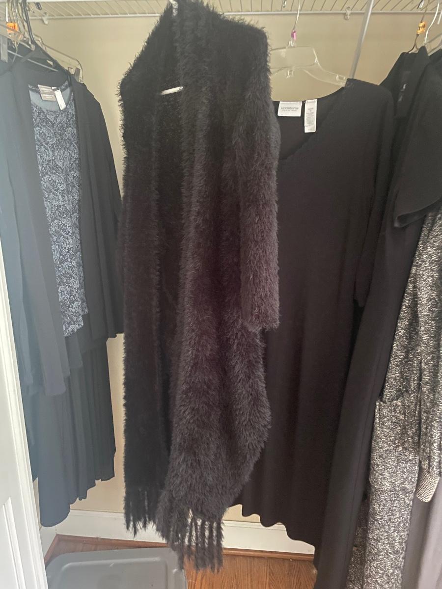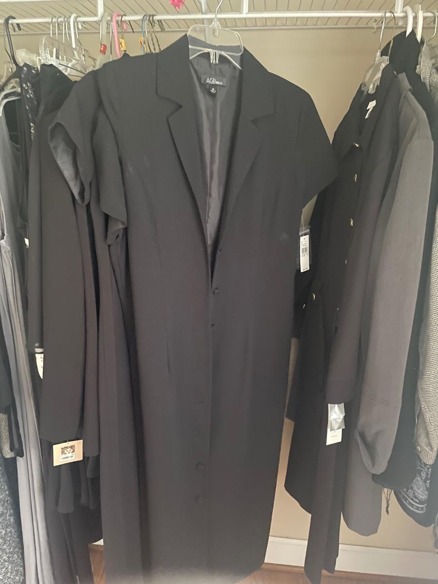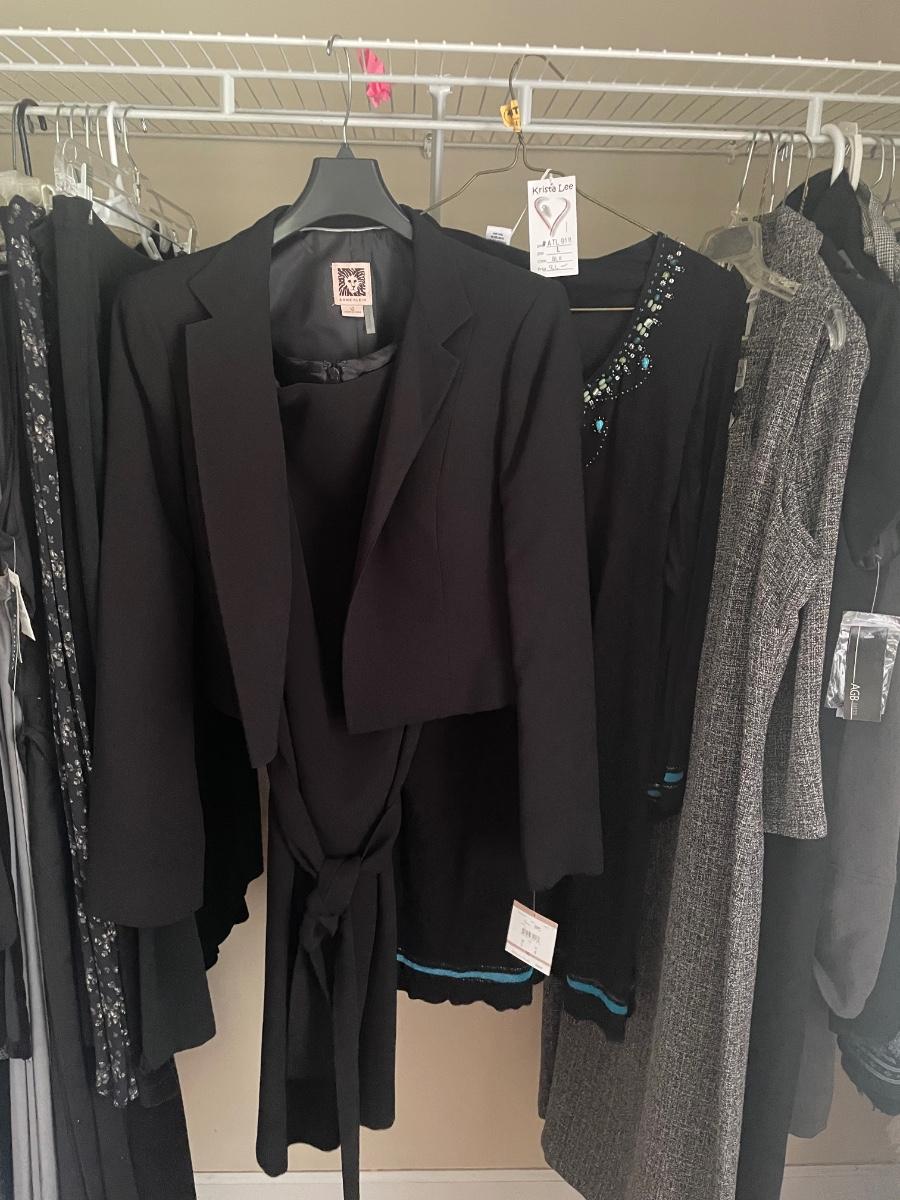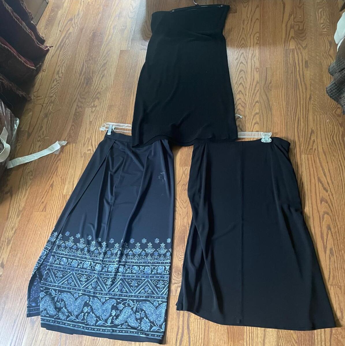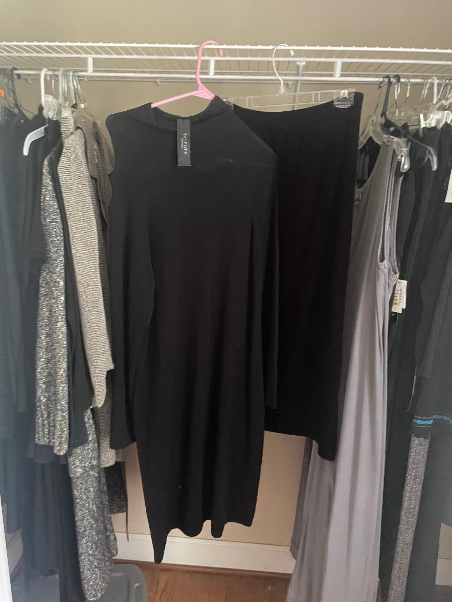 This huge lot has some great name brands and dressy plus casual dresses, shirts, pants and two-piece outfits with lots that are NWT. See images for sizes, brands and tags. Note one skirt (skirt with blue embroidered hemline) has a stain that looks like it should come clean with washing. There are 3 matching J. Jill grey dresses size small and medium.