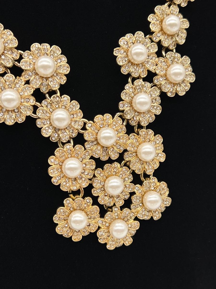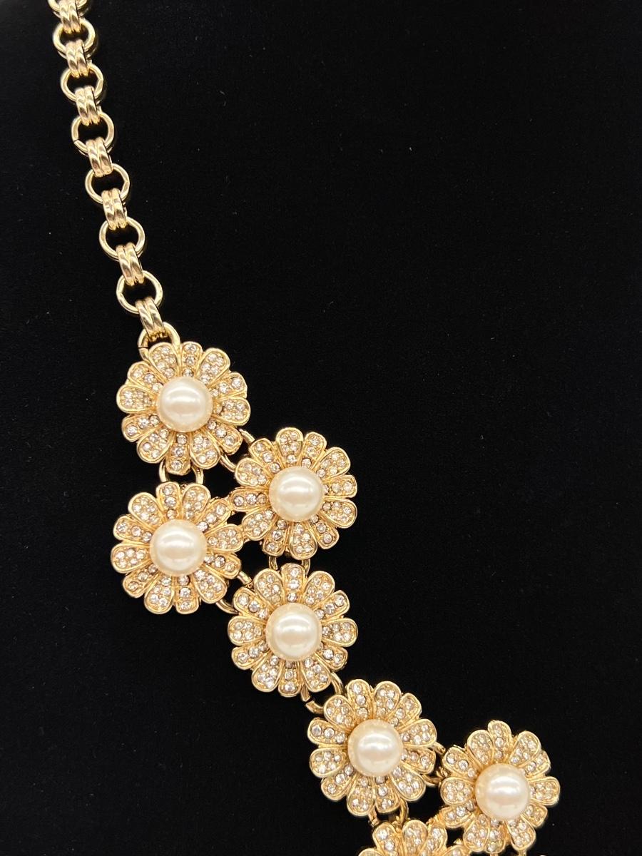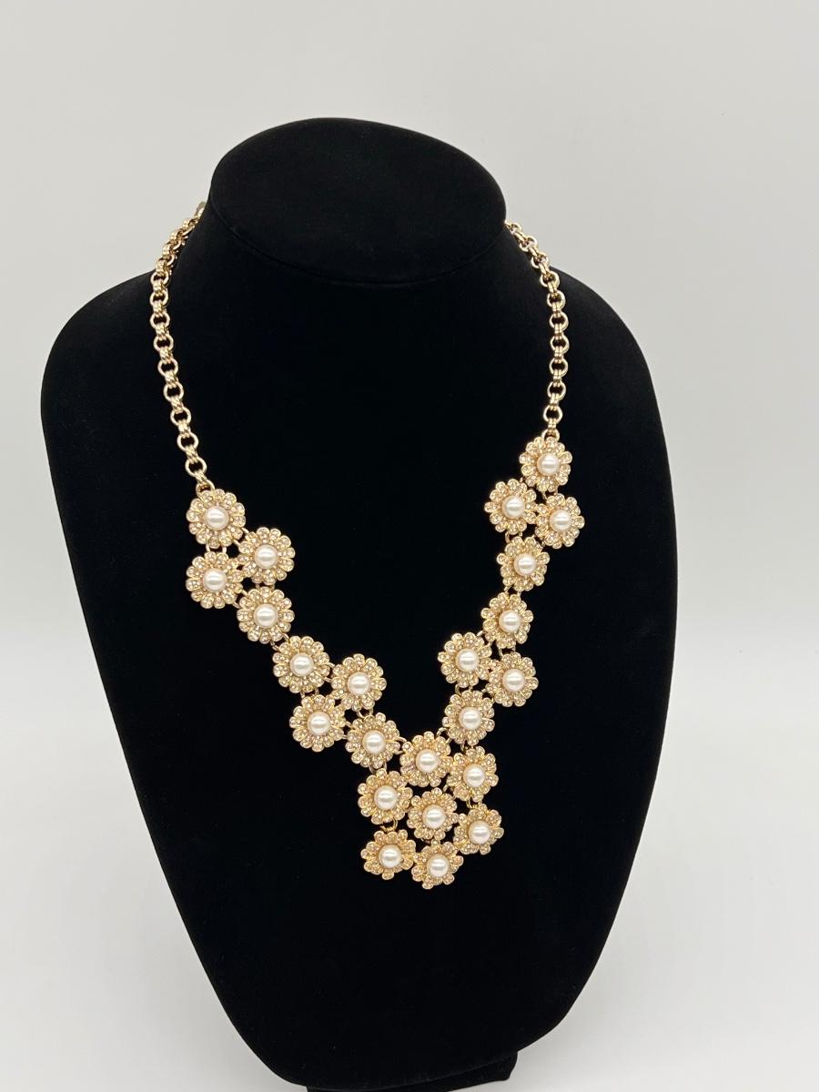 TALBOTS ~ Fashion Faux Pearl Gold Tone Metal Necklace ~ 18" with a 2" extension ~ Each flower = .75"