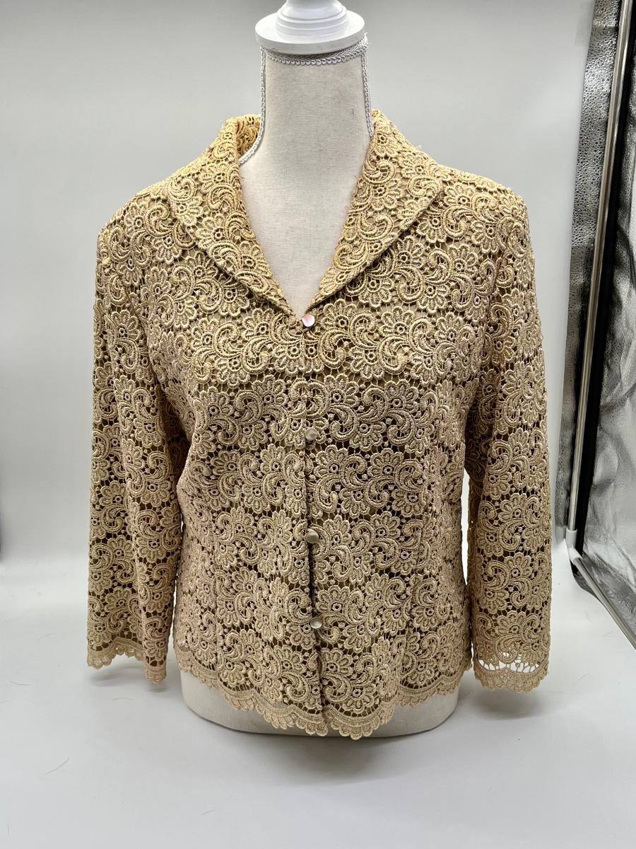 TALBOTS ~ Metallic Gold Lace Blazer ~ Size 14
