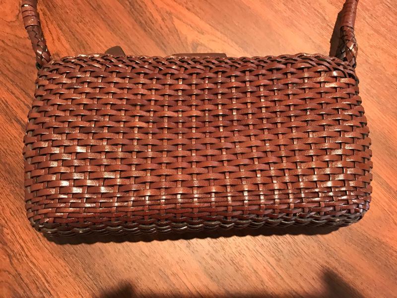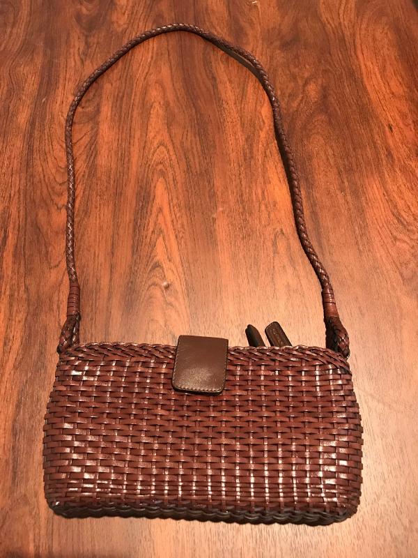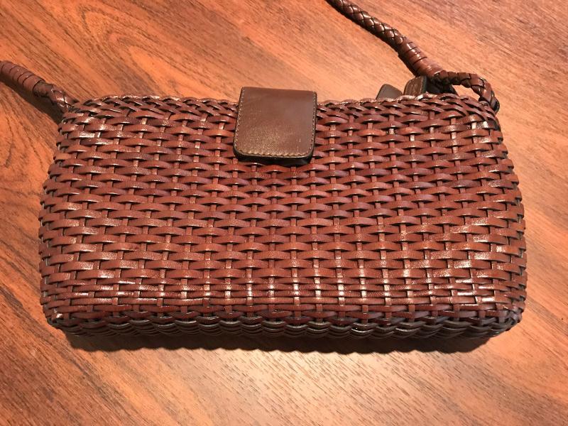 Very nice brown leather basketweave purse with braided strap. Like new condition. 11" L