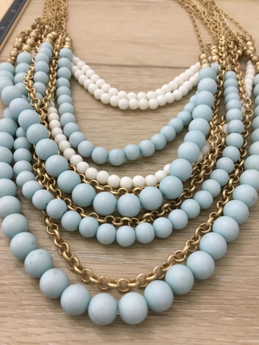 Talbots Multi Chained Beaded Necklace Light Blue White Gold tone