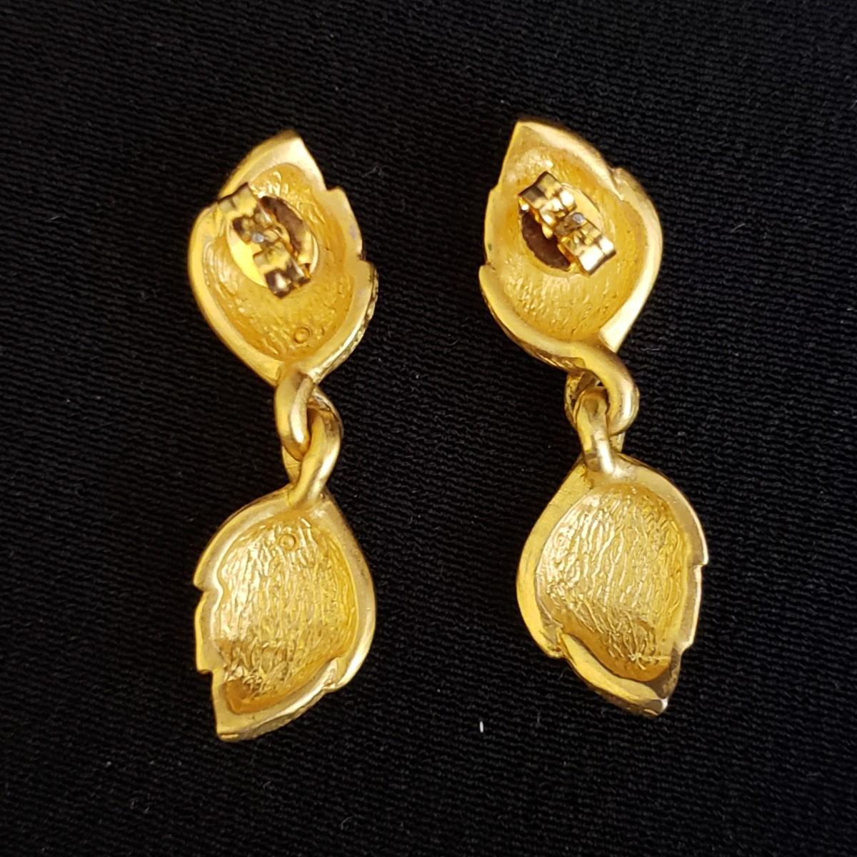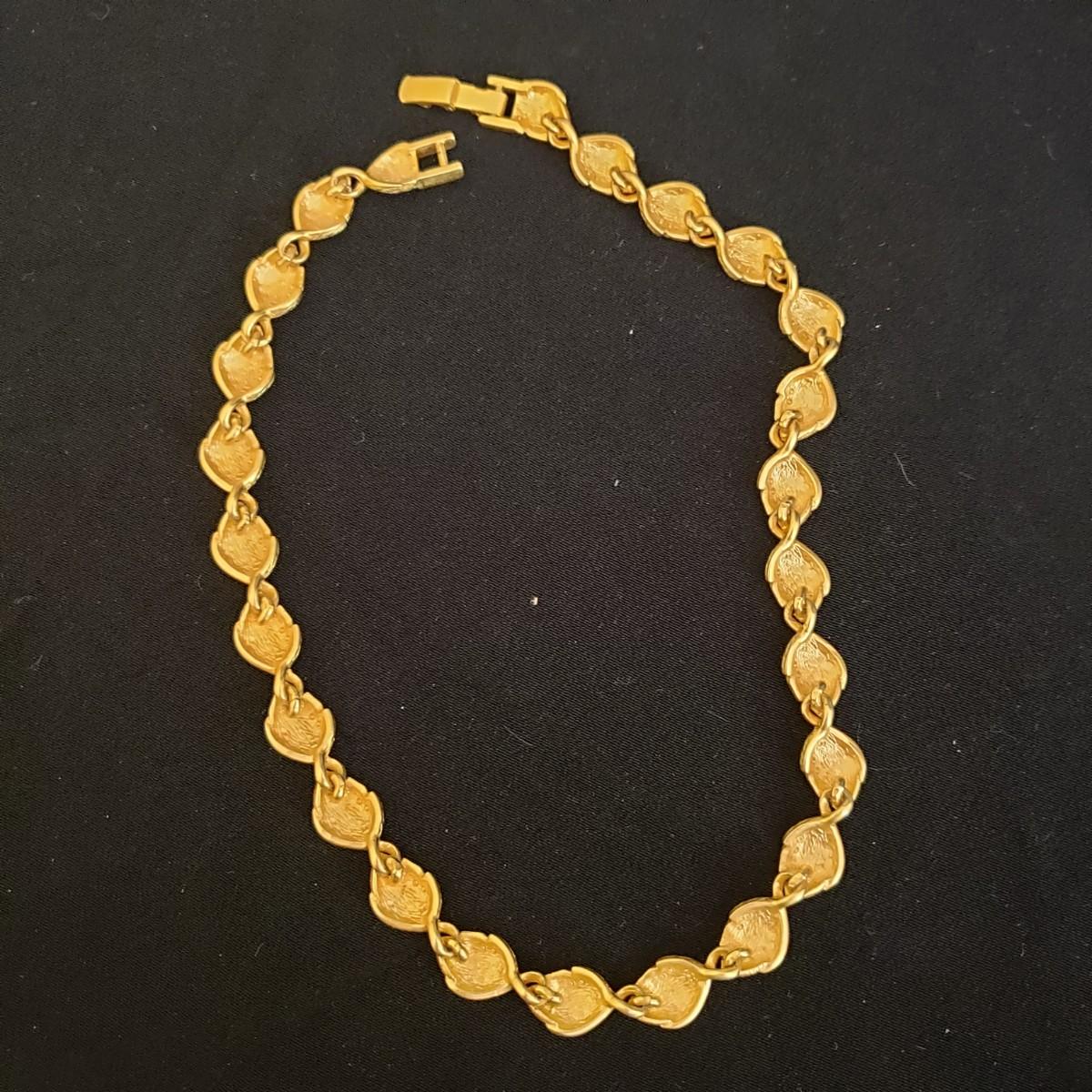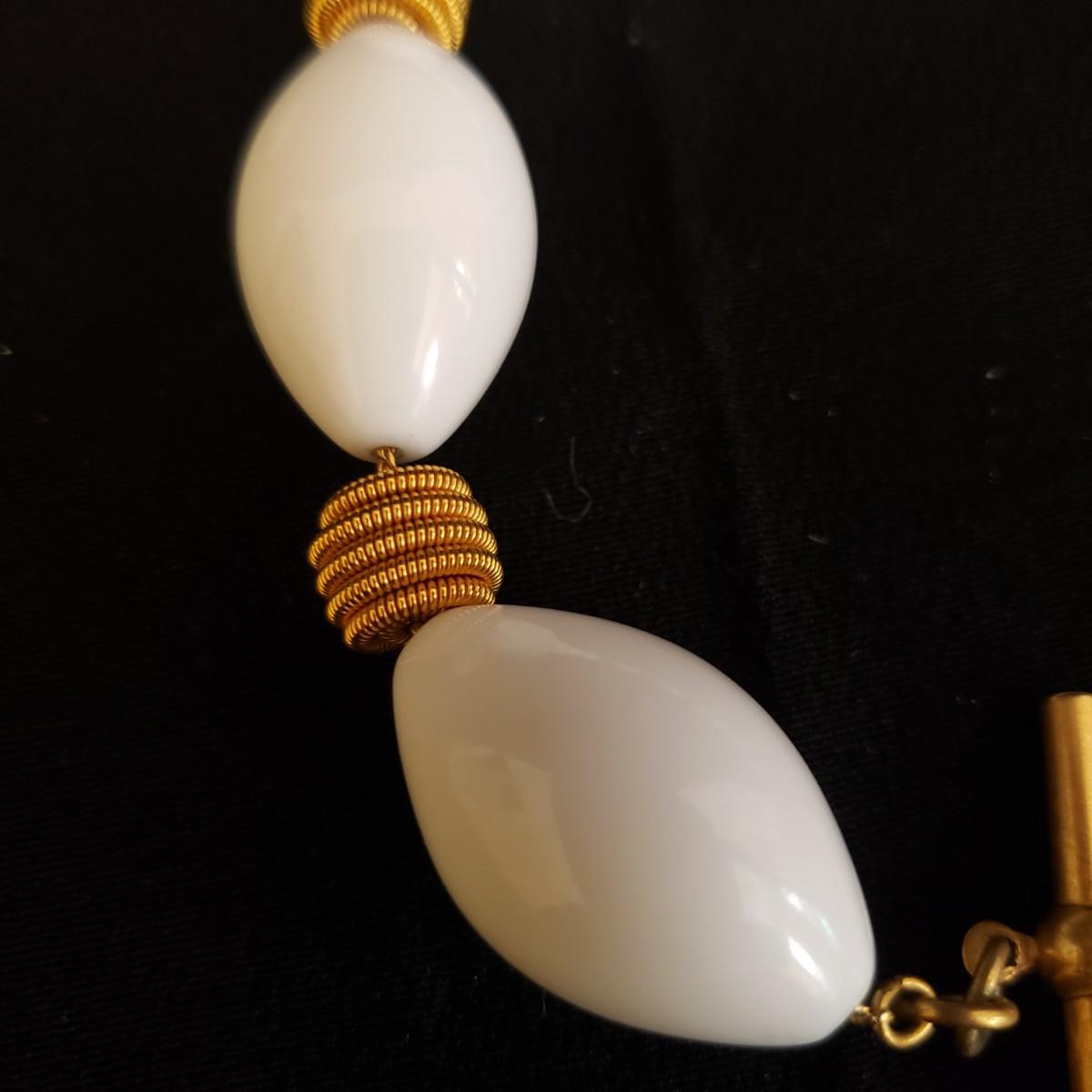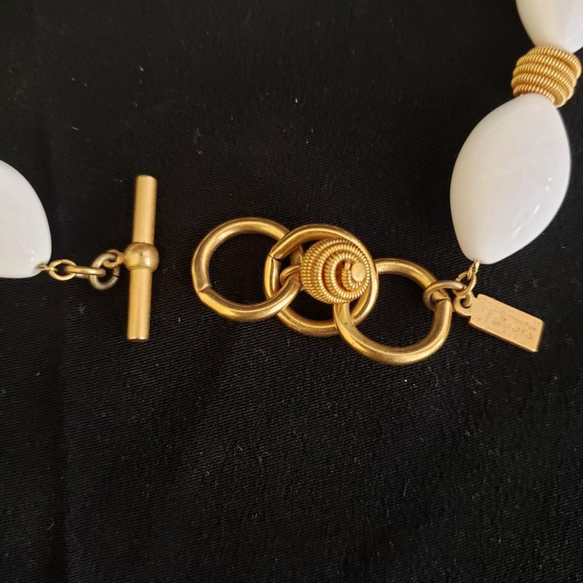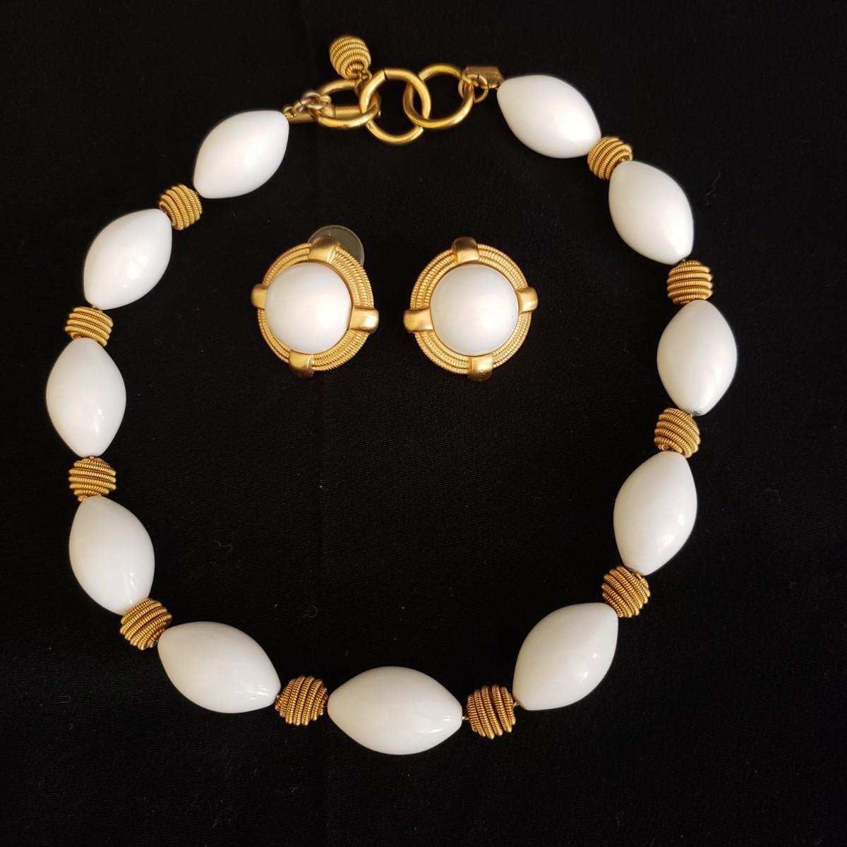 This lot has 3 necklace and earring sets. Two of the necklaces are from Talbott. The heavier to the feel, gold like squares with matching earrings, measures 15". The gold like leaf necklace and matching earrings measures 16". The white bead with gold swirled balls measures 16". Earrings are post earring for pierced ears.