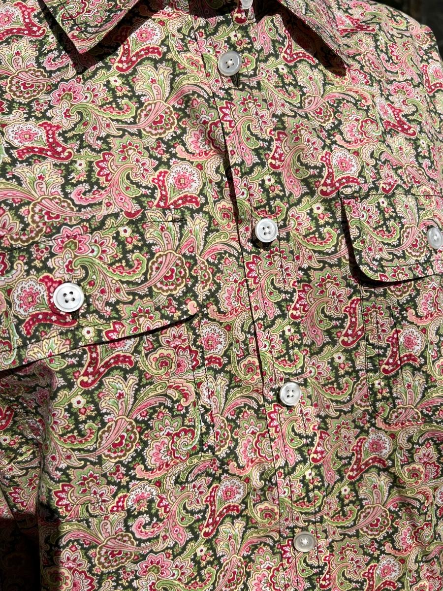 Pink & green paisley button up blouse.