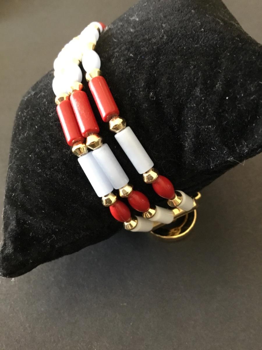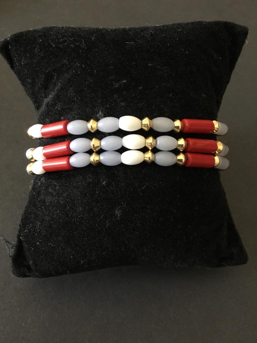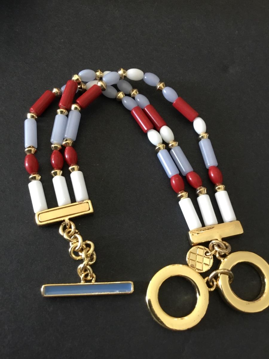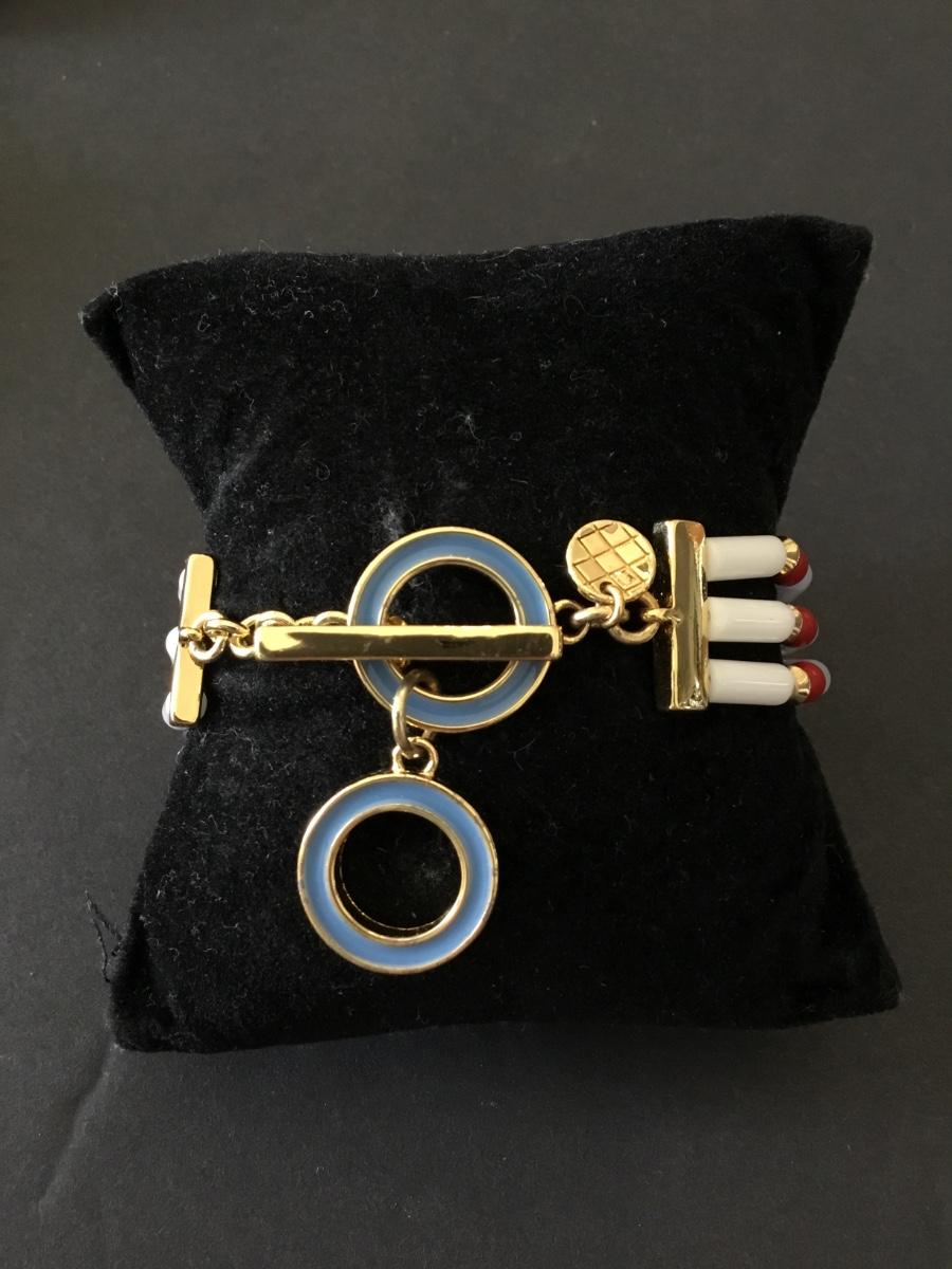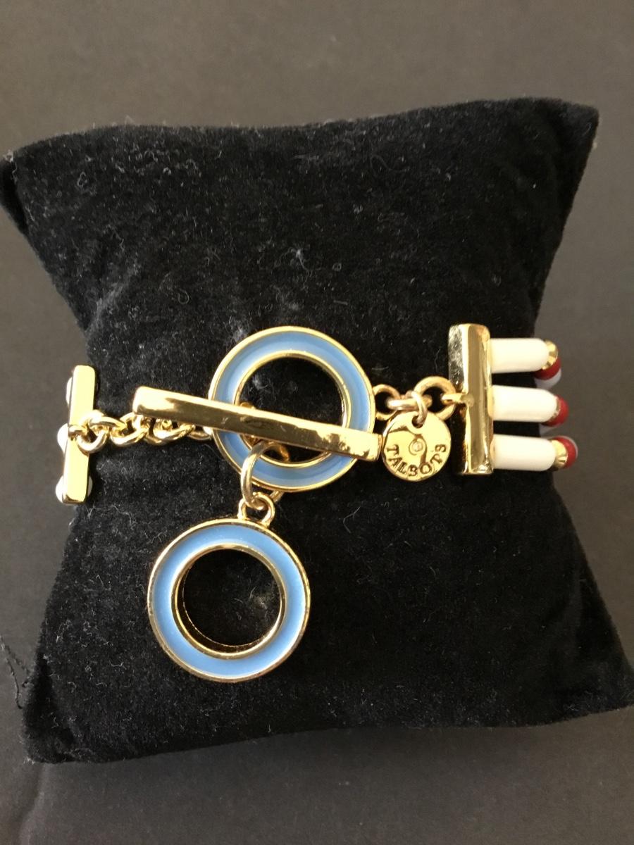 Talbots very nice multicolored bead, gold tone, blue enamel toggle bracelet