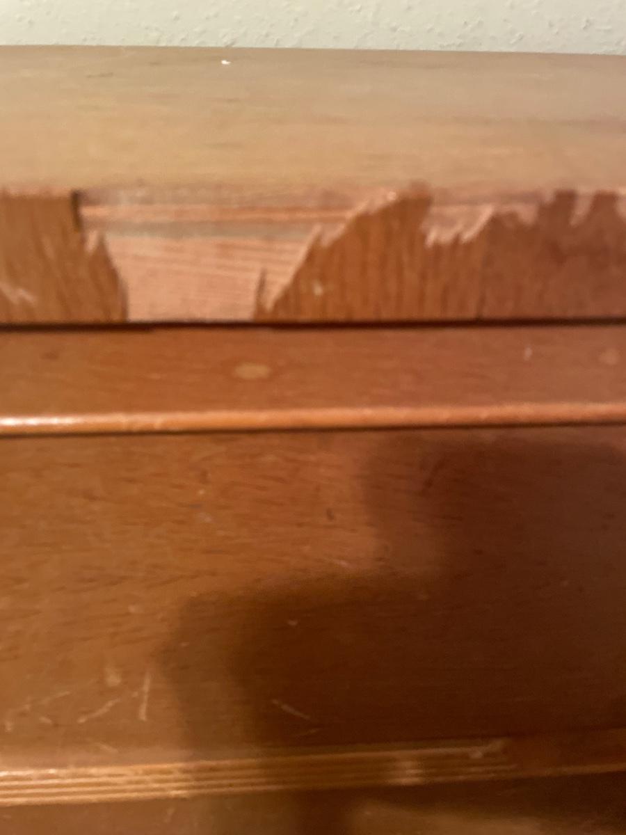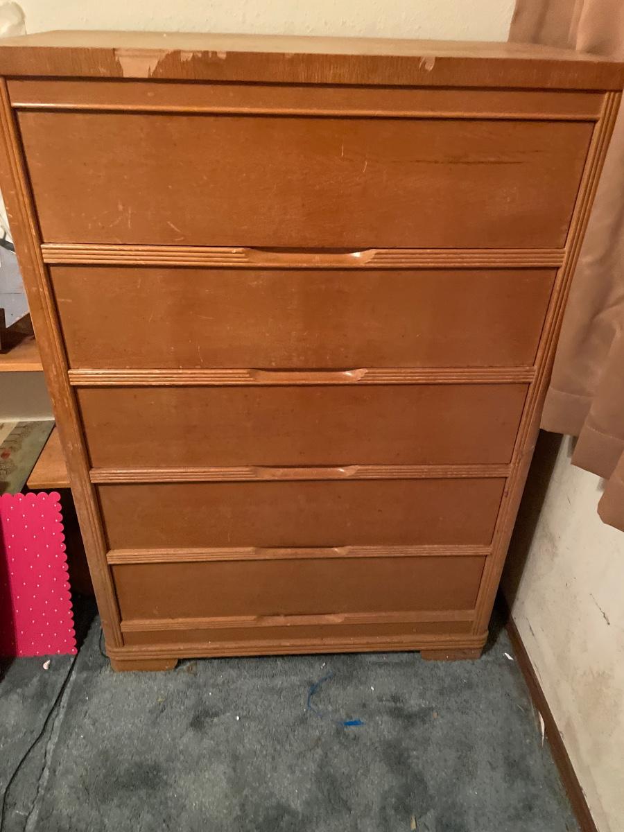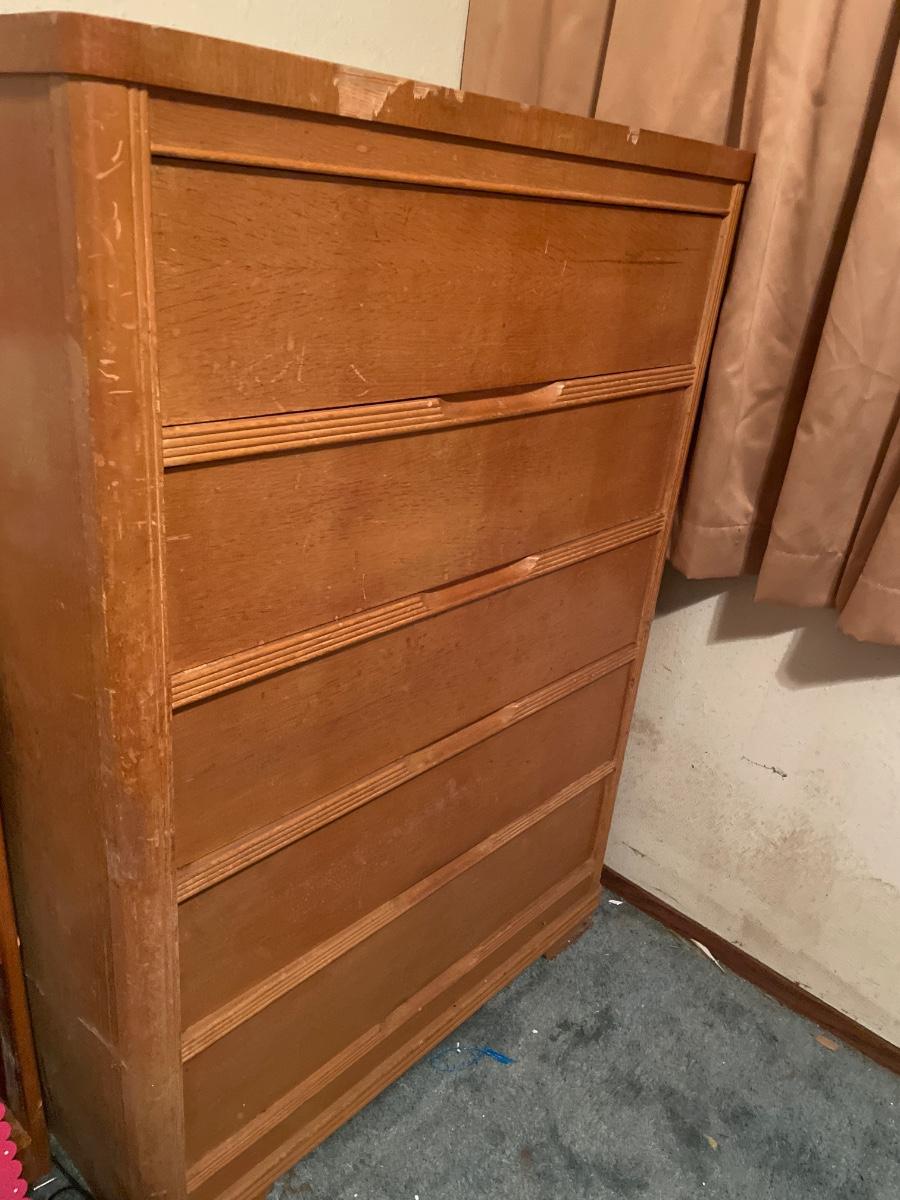 Has some wear and tear. Needs a new home. Could be refurbished by the right person. Dimensions are 48” tall x 34” wide x 17 1/2” deep.