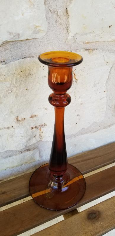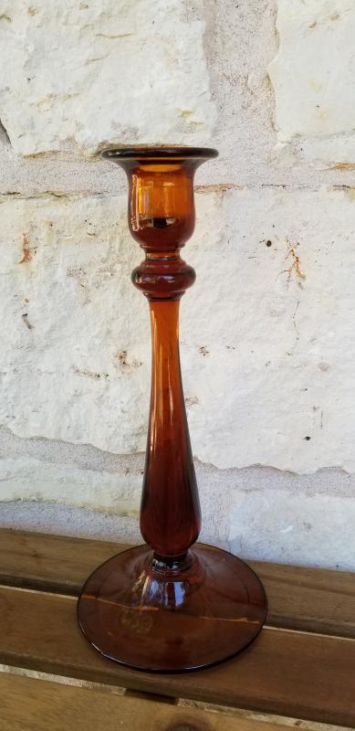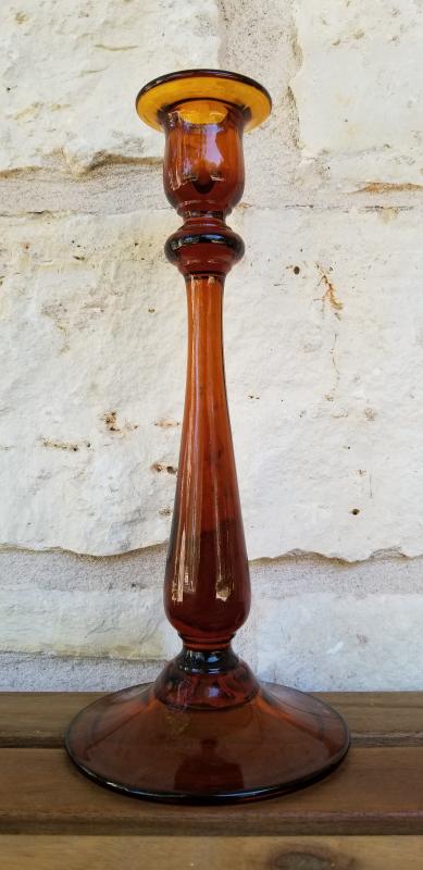 Tall Amber Candlestick Holder
