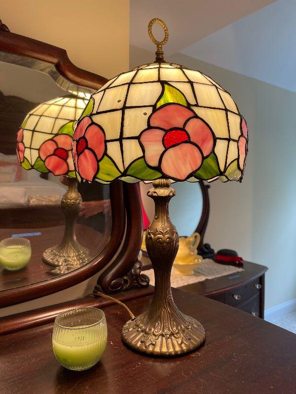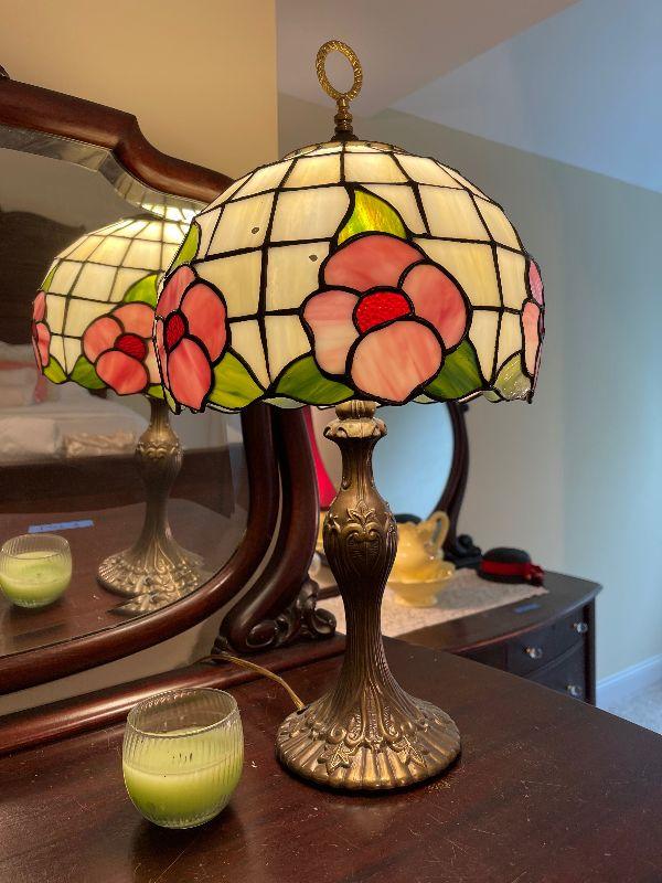 Lot 4 - Antique Dresser With Mirror and Tiffany Style Lamp
