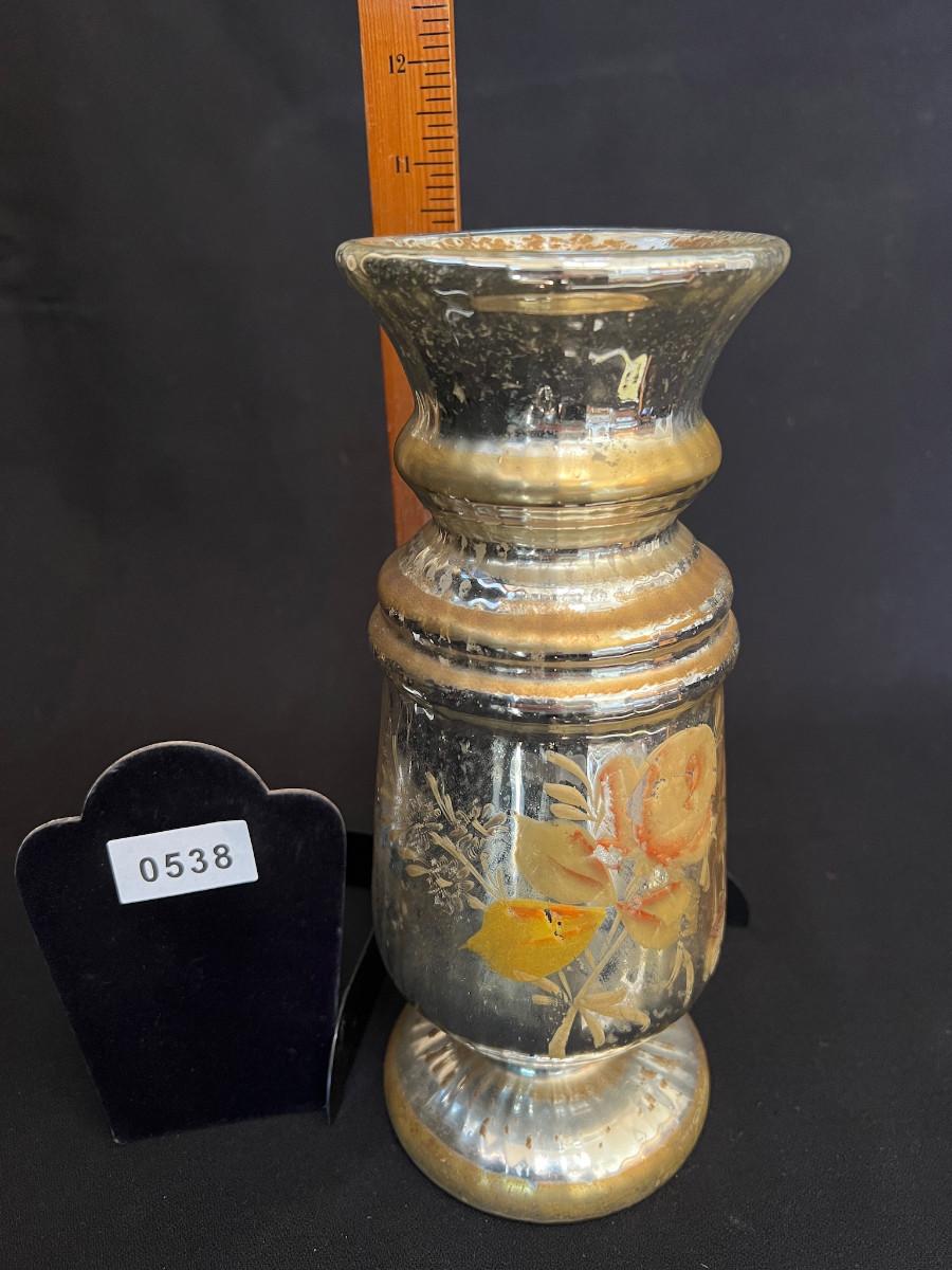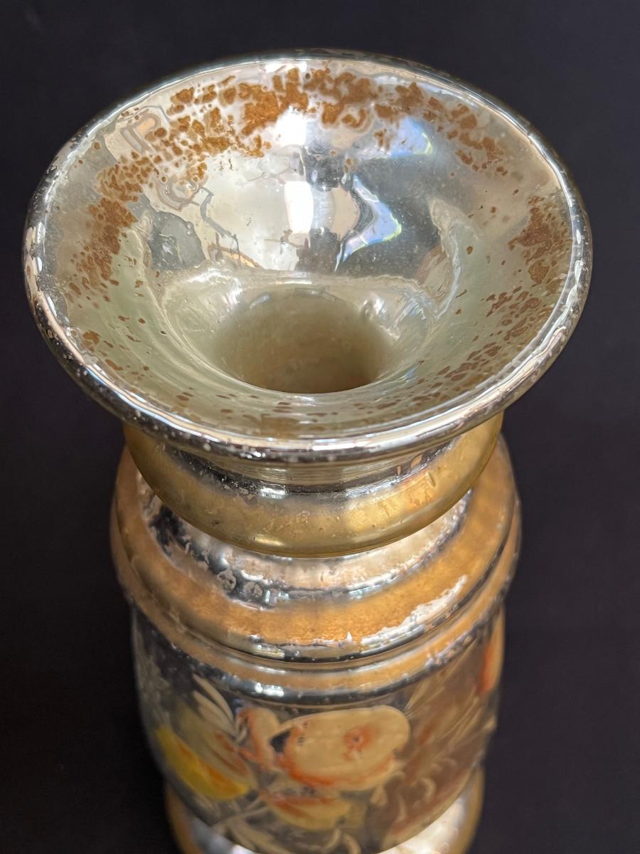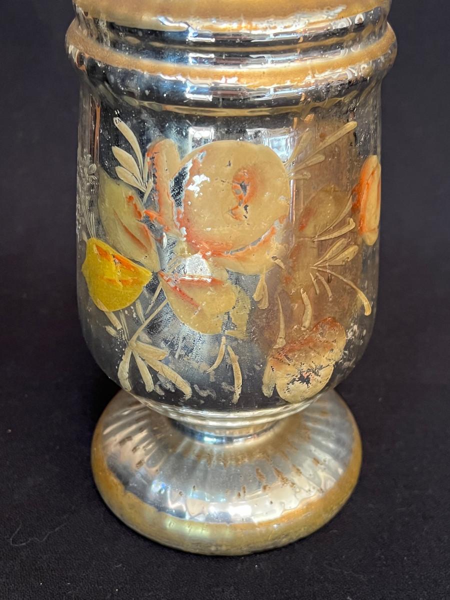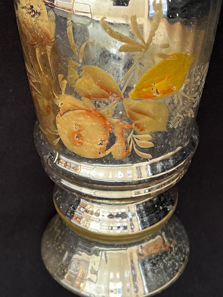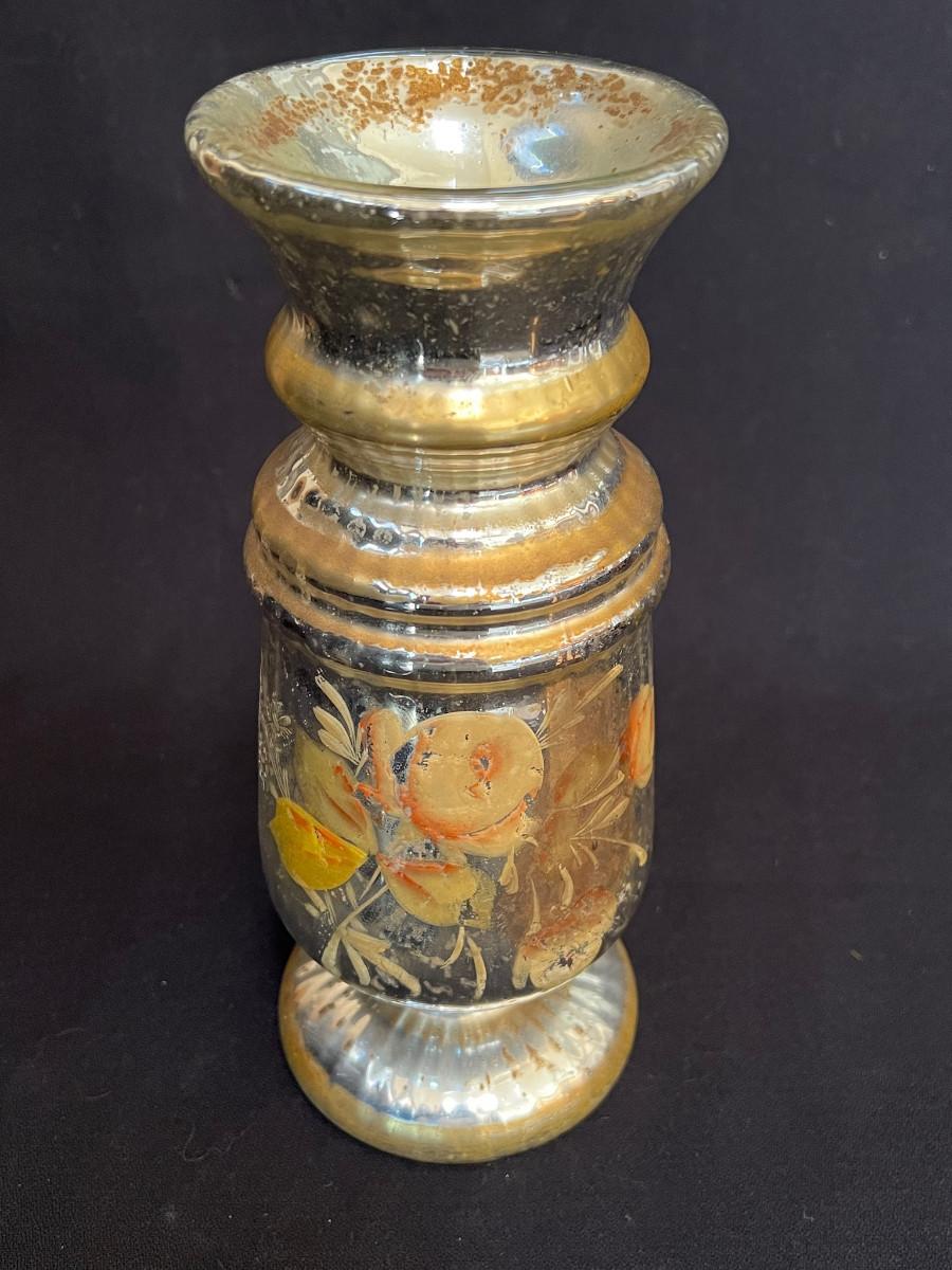 Tall Antique Mercury Blown Glass Hand Painted vase