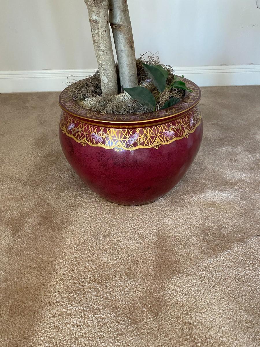 Tall artificial ficus tree in fish bowl planter