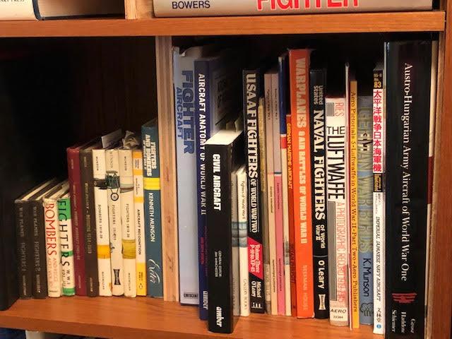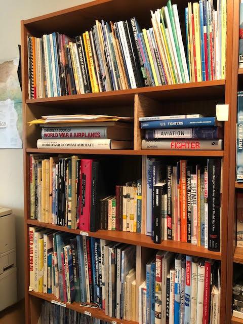 Tall Bookshelf with World War 2 and Other Airplane Magazines and Books