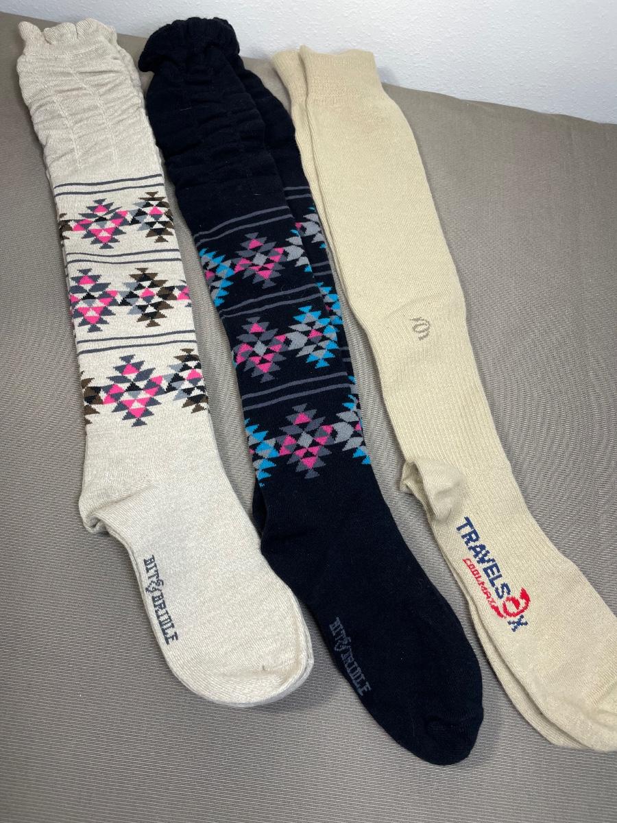 3 pairs of tall socks. Two Bit and Bridal and one Travelsox. All new! Ladies shoe sizes 6-9.