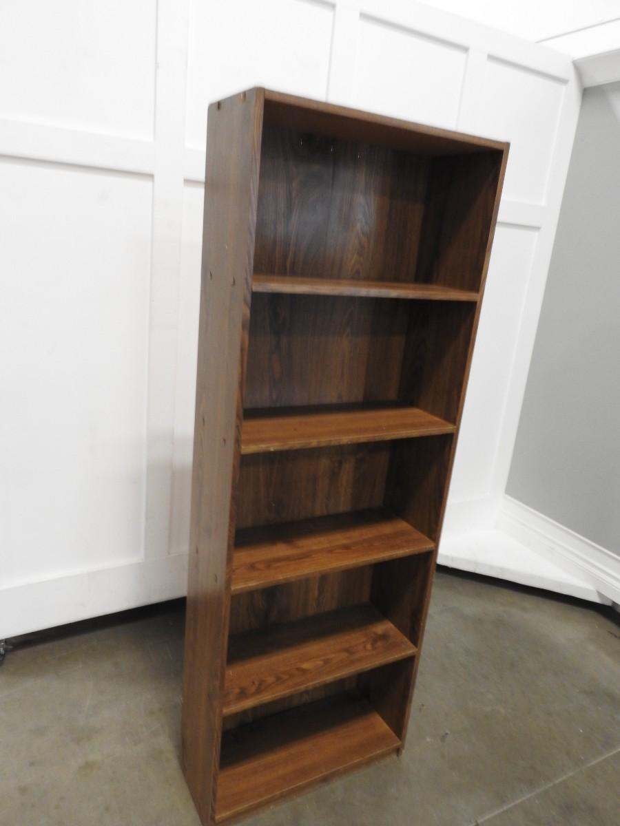Tall Brown Wooden Bookshelf: 5 Shelves