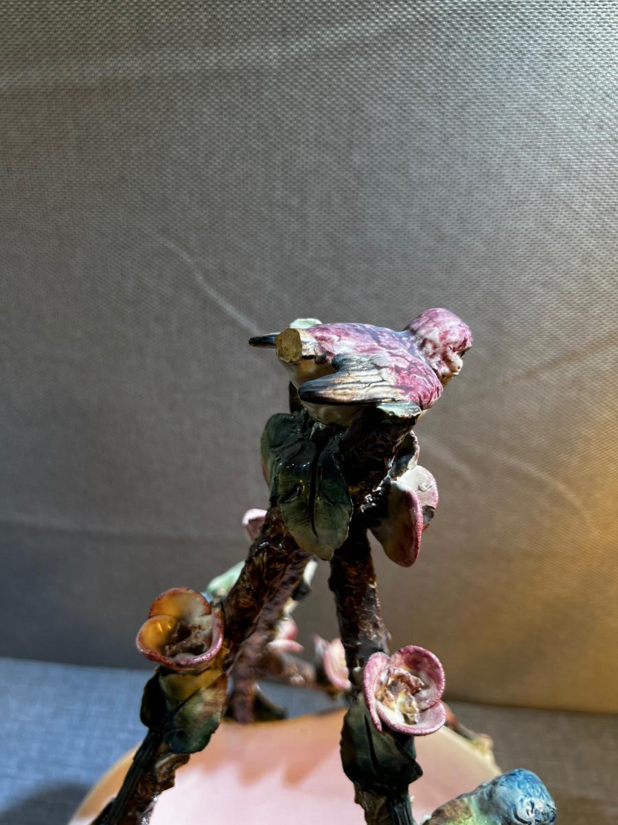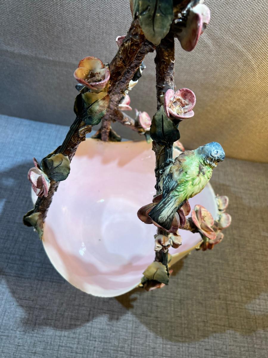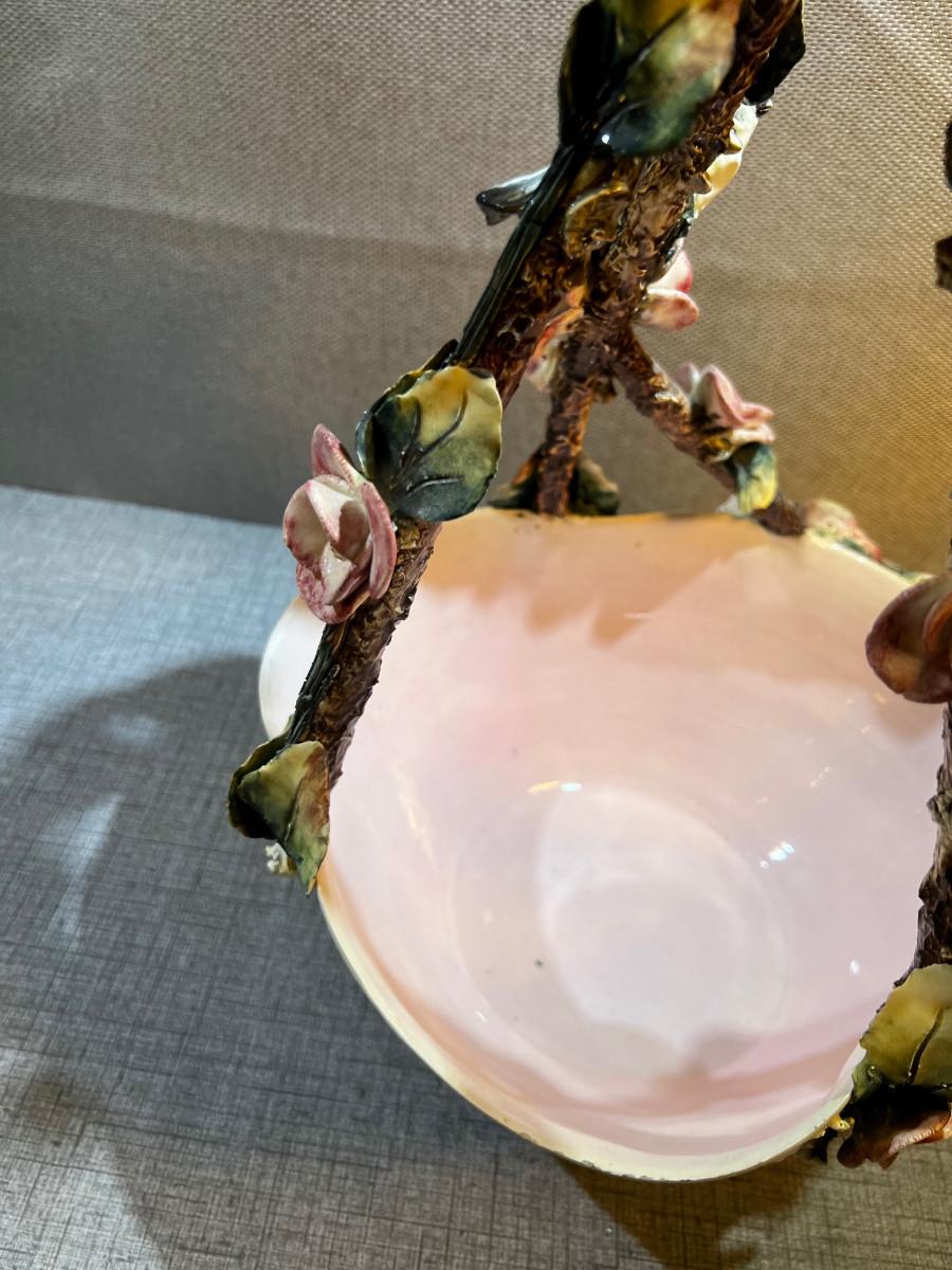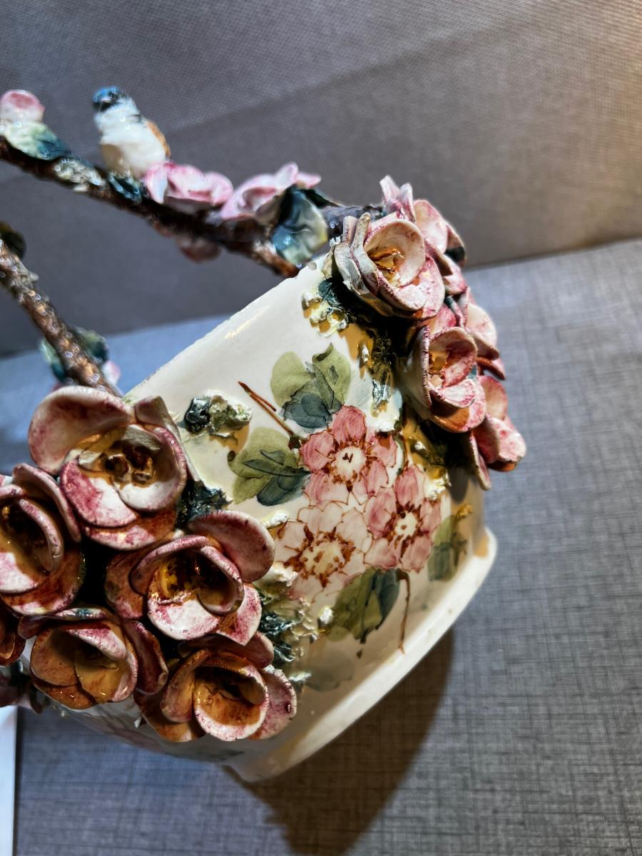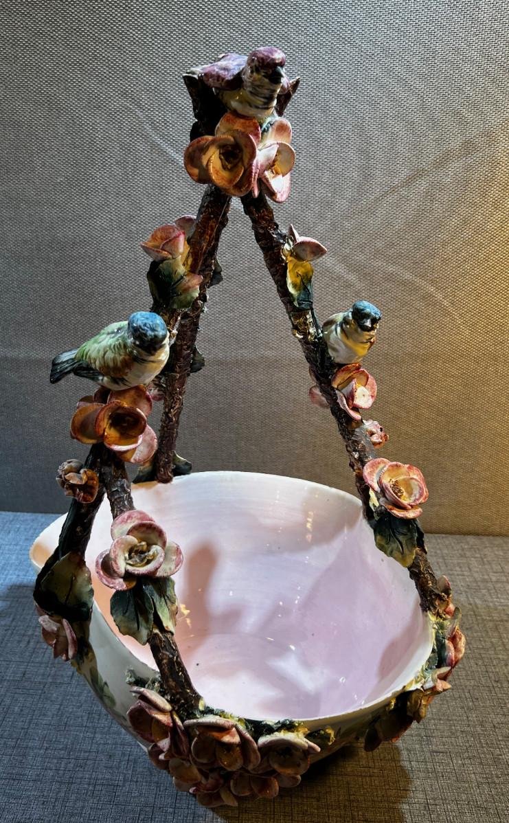 Tall Capodimonte Majolica Basket Birds & Flowers