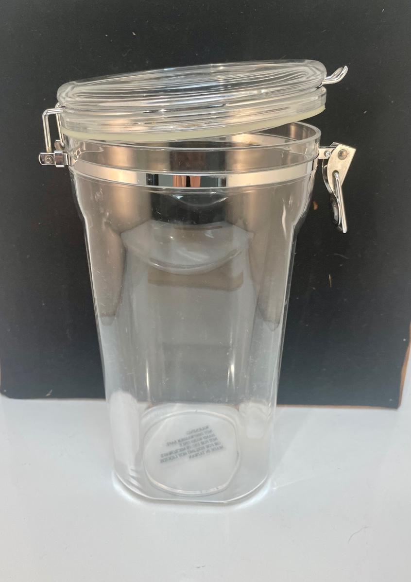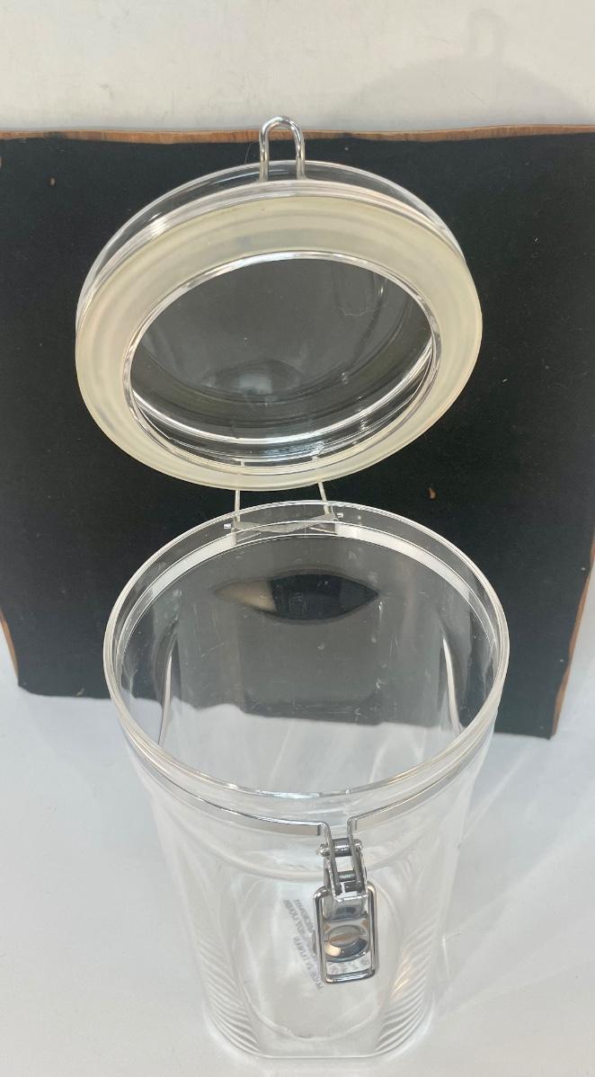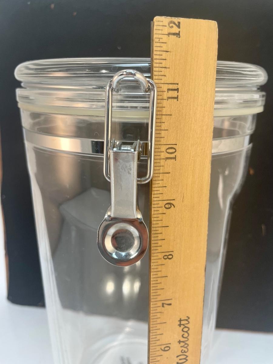 Tall Clear Acrylic Canister with Lid. No cracks or damage, near new condition. Approx. 11” tall.