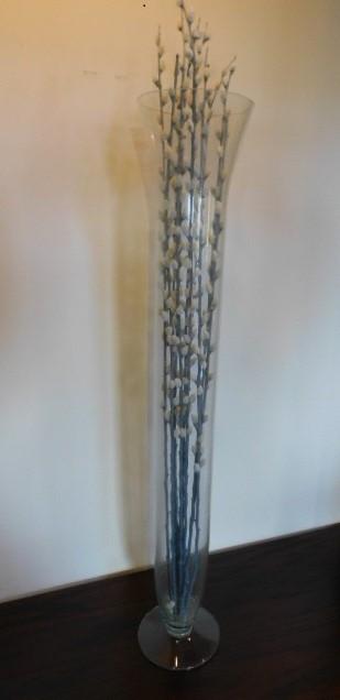 Tall Clear Glass Flower Vase 35"x6" has no flaws and allows for a full view of your arrangement. Can be for the appropriate table or a floor style vase.