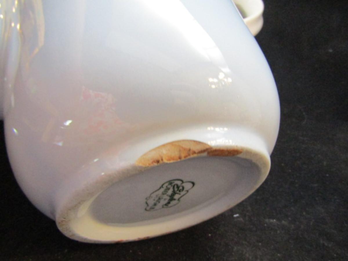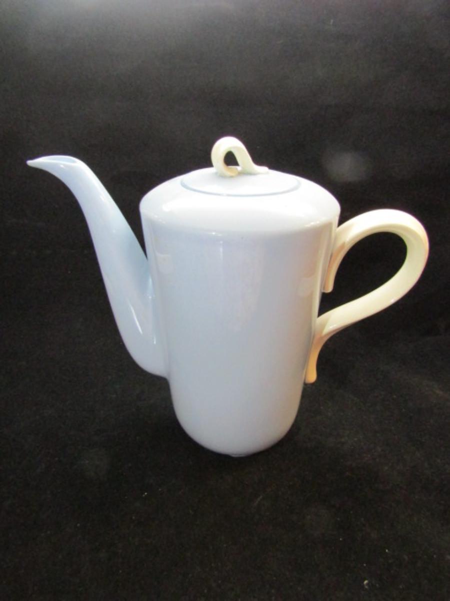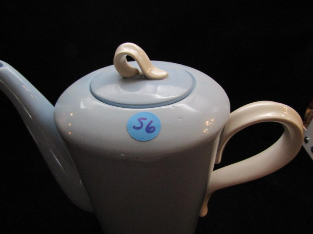 Tall Coffee/Tea Pot Made by Homer Laughlin- Baby Blue and White (#56). There is a chip on the bottom.