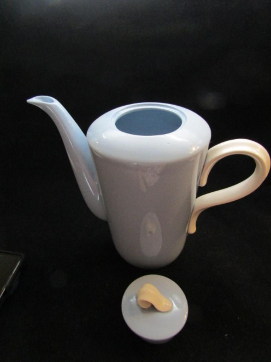Tall Coffee/Tea Pot Made by Homer Laughlin- Baby Blue and White (#56)