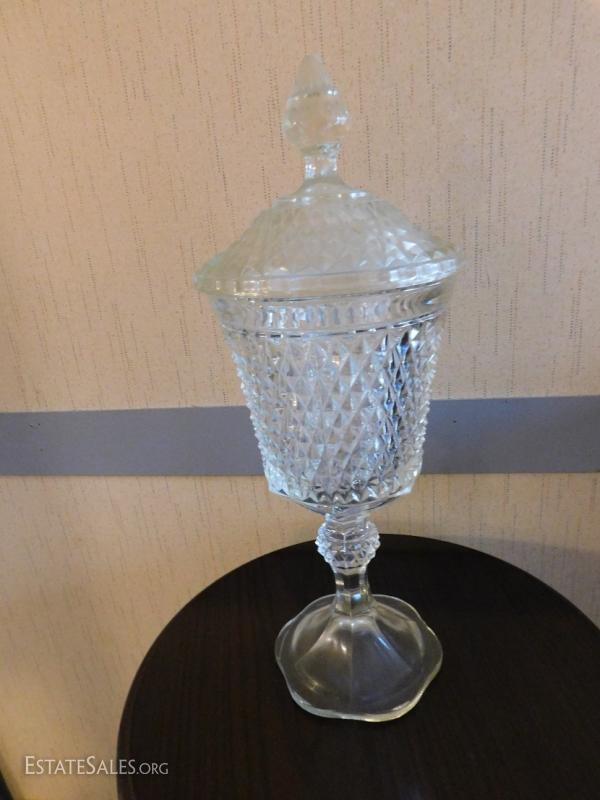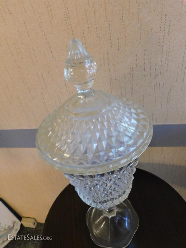 Tall Crystal Dish with Lid 12" in very good condition. Heavy